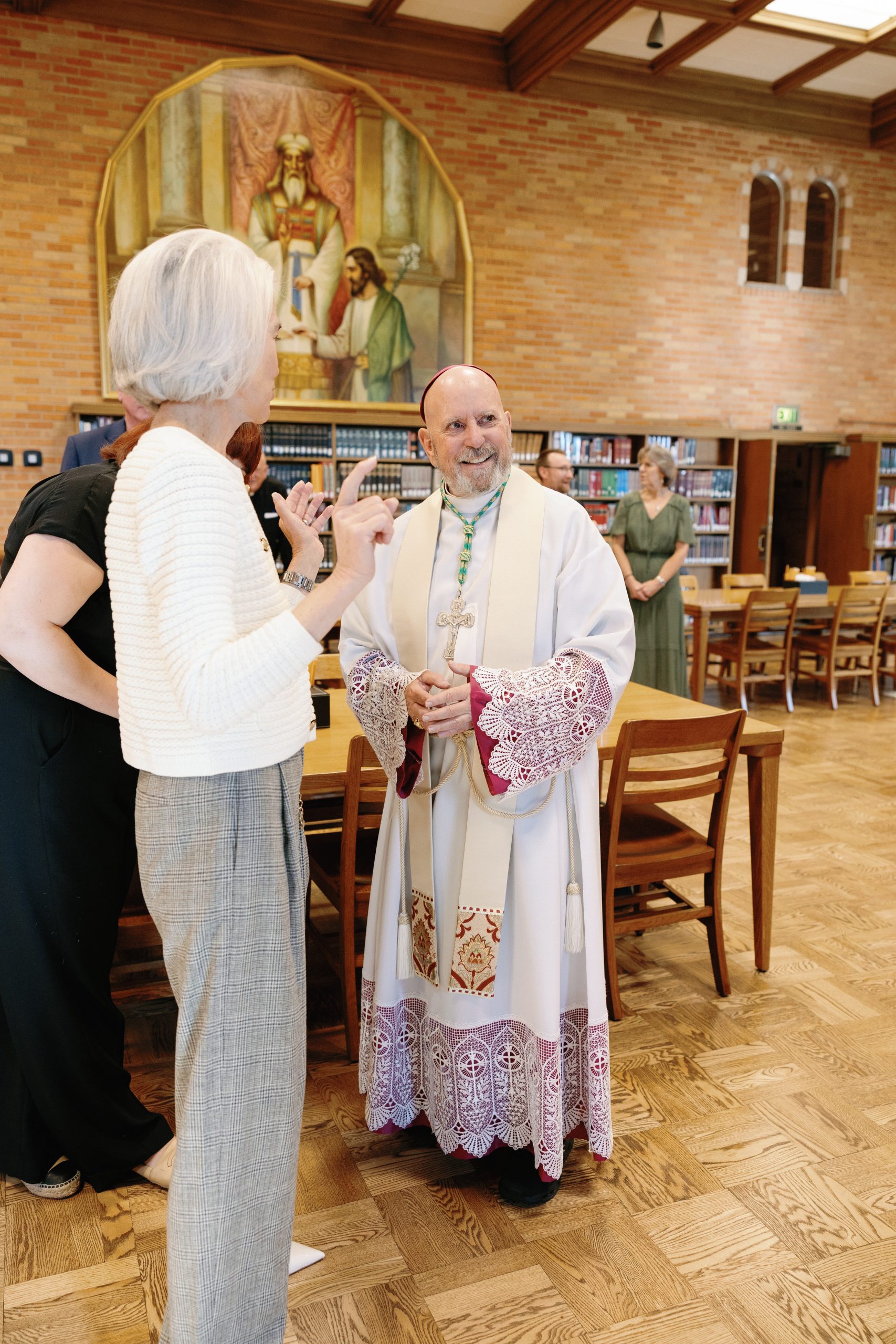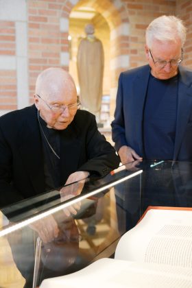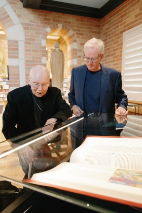La ceremonia marcó la finalización de extensas renovaciones diseñadas para crear un ambiente acogedor donde los seminaristas puedan adentrarse en los textos sagrados, realizar investigaciones y participar en el diálogo intelectual. El proyecto fue financiado por la fundación de la familia Moore, mientras que los esposos John y Carol Saeman donaron a la galería de la biblioteca la edición patrimonial de la famosa y hermosa Biblia de San Juan, compuesta por siete volúmenes.