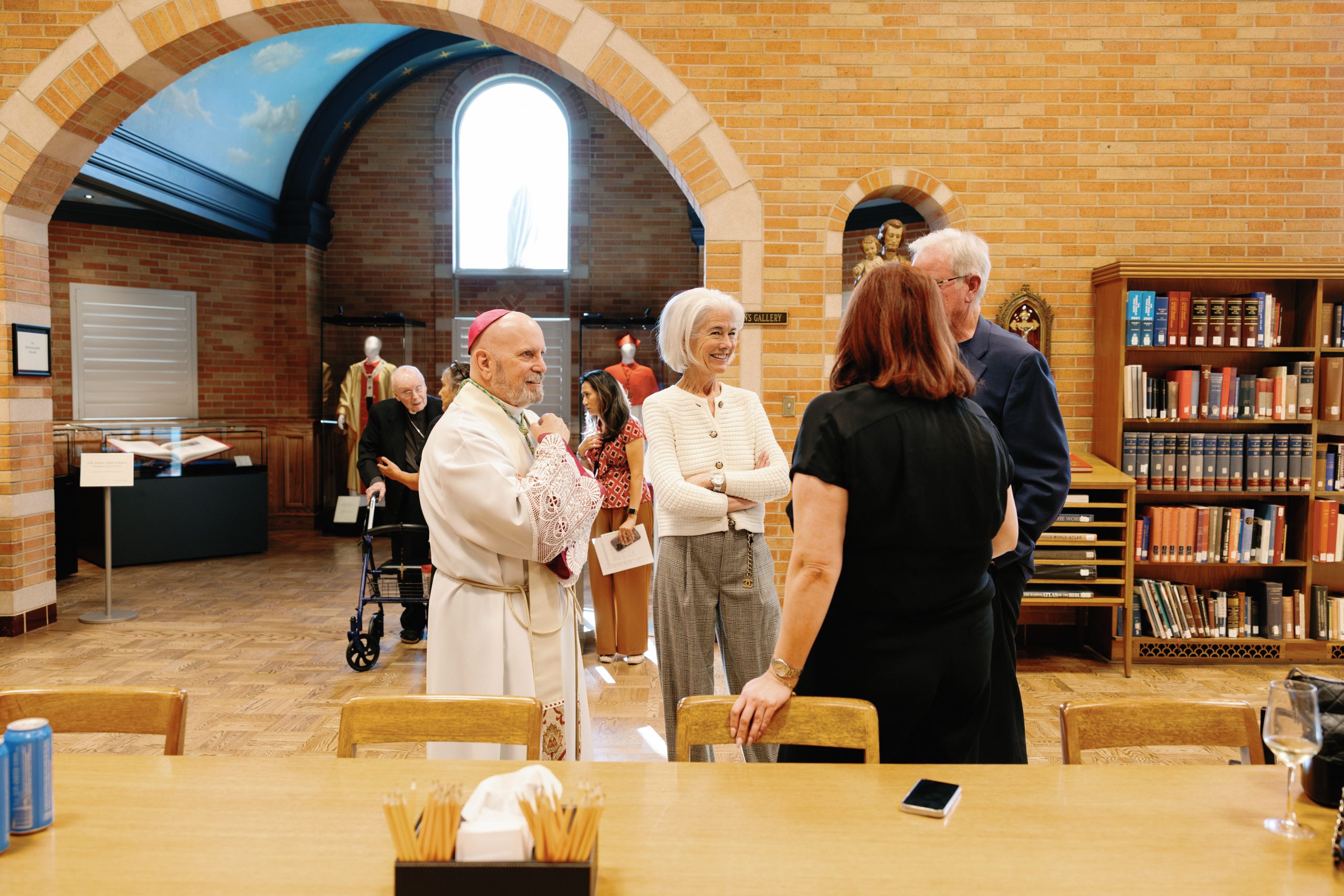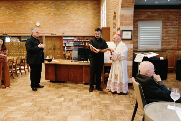 “Somos muy afortunados de que el arzobispo Samuel haya bendecido la biblioteca Cardenal Stafford. Alguien que hubiera estado aquí hace tres años no la reconocería hoy”, dijo Jennifer Murphy, directora ejecutiva de la biblioteca. “Gracias a la generosidad de la Fundación Moore, se ha convertido en un espacio hermoso y acogedor para los seminaristas. Además, nuestra preciosa Galería de San Juan está completa y será el centro de una nueva serie de exposiciones y conferencias”.