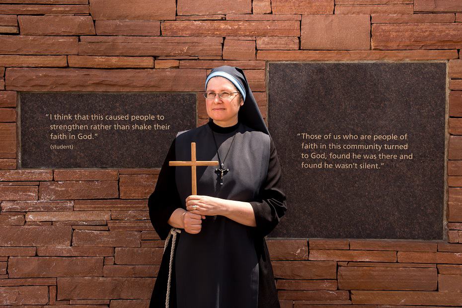 «Incluso cuando no conocía a Dios ese día en Columbine, Él me sacó de la escuela, me protegió», dijo la hermana Mary Gianna. «Me amaba tanto que se acercó a mí y me mostró este camino de vida».