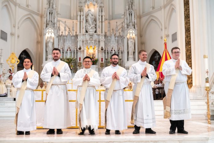 El pasado sábado 10 de mayo, el arzobispo Samuel J. Aquila ordenó sacerdotes a seis hombres en la Catedral Basílica de la Inmaculada Concepción.