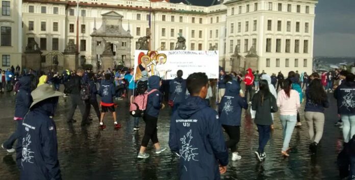 Un grupo de la parroquia Queen of Peace de Aurora – Colorado llegó el pasado jueves a Polonia. Es parte de un grupo de 300 peregrinos del Camino Neocatecumenal que participan en la jornada. En los últimos días hemos estado en Praga, capital de República Checa. Tanto la primera noche, como la tarde en el segundo día, salimos a las calles a proclamar la Buena Nueva. ¡Imagínense, alrededor de 300 personas, la mayoría jóvenes, procesando por las calles de Praga, una ciudad desconocida, cuyo lenguaje no entendemos, cantando, aplaudiendo, tocando la guitarra, tambores y tamborines ¡Fue increíble! Todos nos volteaban a ver, sorprendidos. Nos tomaban fotos, y nos hacían preguntas. Me contaron que el 80 por ciento de la población en Praga se considera Ateo. Me tocó mucho el poder alabar al Señor y dar una señal de la alegría que Él nos da, con algo tan simple – el cantar.