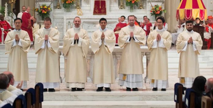 Era la fiesta de San Matías apóstol, por ello ese día el color de la liturgia era el rojo. Era también la víspera de la fiesta de Pentecostés. El Espíritu Santo derramó sus dones y mostró la universalidad de la Iglesia representada en estos siete nuevos sacerdotes: Mason Fraley, Hermano James Claver, Matthew Magee (Estados Unidos); Thomas Nguyen, Vincent Bui (Vietnam); Salvador Sánchez-Gasca (México) y Fernando Freddy Londoño (Colombia).