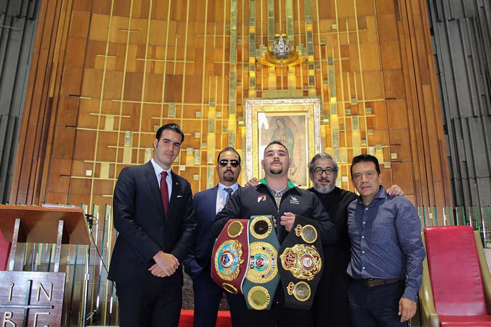 El entrenador de Andy Ruiz Jr., mostrando el Guante de Boxeo Hecho en México con la imagen de la Virgen de Guadalupe. (Foto cortesía de la Insigne y Nacional Basílica de Sanata María de Guadalupe)Andy Ruiz sonriente levantando el brazo en una de las capillas altas de la Basílica de la Virgen de Guadalupe en la Ciudad de México. (Foto cortesía de la Insigne y Nacional Basílica de Sanata María de Guadalupe)Andy Ruiz Jr. con sus cinturones de peso pesado por el titulo unificado de Asociación Mundial de Boxeo Super (WBA): la Federación Internacional de Boxeo (IBF), la Organización Mundial de Boxeo (WBO) y la Organización Internacional de Boxeo (IBO); acompañado de Miguel Torruco Canga de la Comisión Nacional de Boxeo; su padre, Andrés Ruiz Sr.; el M.I. Sr. Cango. Luis Felipe García Álvarez y su entrenador, con la imagen de Nuestra Señora de Guadalupe en el fondo. (Foto cortesía de la Insigne y Nacional Basílica de Sanata María de Guadalupe)El «Destroyer» Ruiz se tomó el tiempo para repartir autógrafos con sus fans a las afueras de la Basílica. (Foto cortesía de la Insigne y Nacional Basílica de Sanata María de Guadalupe)El campeón de peso pesado Andy Ruiz Jr. contemplando la imagen de Nuestra Señora de Guadalupe al lado del M.I. Sr. Cango. Luis Felipe García Álvarez. (Foto cortesía de la Insigne y Nacional Basílica de Sanata María de Guadalupe)El boxeador mexicoamericano Andy Ruiz Jr. se tomó tiempo para firmar el libro de visitas distinguidas de la Basílica de Guadalupe. (Foto cortesía de la Insigne y Nacional Basílica de Sanata María de Guadalupe)El nuevo campeón de peso pesado se dio tiempo de tomarse fotos con algunos aficionados de todas las edades. (Foto cortesía de la Insigne y Nacional Basílica de Sanata María de Guadalupe)Esta imagen demuestra el fervor Guadalupano de Andy Ruiz Jr., quien oró con devoción a Nuestra Señora del Tepeyac con sus cinturones colgados en los brazos. (Foto cortesía de la Insigne y Nacional Basílica de Sanata María de Guadalupe)