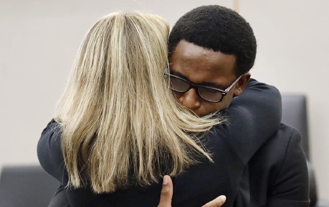 Pero aquí no terminó todo. Brandt fue suficientemente valiente de pedirle permiso al juez para darle un abrazo a Guyger. El juez se lo concedió, y ambos se abrazaron más de un minuto, Guyger llorando en el hombro de Brandt, tal como lo haríamos algunos de nosotros si fuéramos abrazados por Cristo.