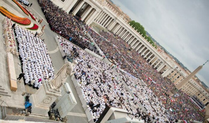 “Cuando llegué a Roma para la canonización, el aire vibraba con la electricidad de la gente de todo el mundo, reunida para la celebración”, dijo Mons. Aquila. “Me encontré con un grupo de Bérgamo, el lugar natal de San Juan XXIII y con muchos peregrinos polacos. El domingo me sorprendí al saber que iba a concelebrar la Misa de canonización. Fue una verdadera bendición y pude sentir la cercanía de San Juan Pablo II mientras celebraba la Eucaristía”.