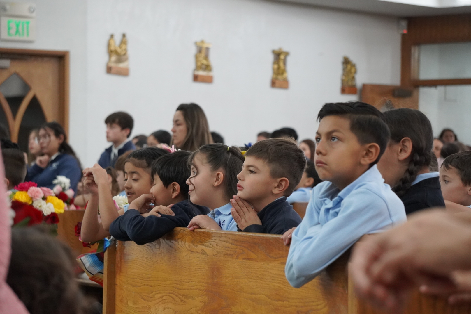 El aroma de las flores inundaba la parroquia Presentation of Our Lady mientras los estudiantes desfilaban uno tras otro, llevando flores para depositarlas ante la Virgen. Algunas flores estaban cuidadosamente envueltas. Otras eran sostenidas con fuerza por pequeñas manos, con los tallos doblándose mientras los estudiantes se esforzaban por no dejar caer sus preciadas ofrendas.