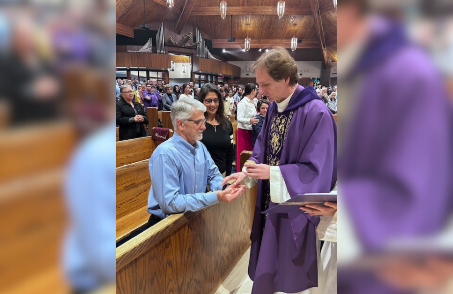 “Se podría decir que el amor de Irene por Dios desbordó tanto que terminó cayendo en el corazón de Tom, y simplemente tuvo que aprender más sobre el catolicismo”, explicó el diácono Paul Louderman, quien dirige el programa de iniciación cristiana para adultos (OCIA, por sus siglas en inglés) en la parroquia.