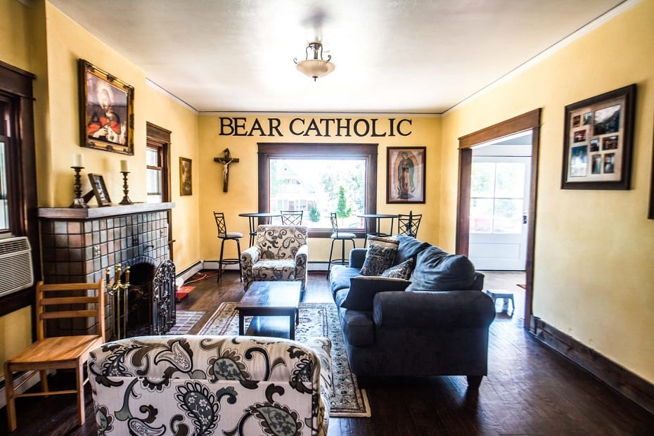 Bear Catholic sirve a los estudiantes en UNC de varias maneras con dos ministros de medio tiempo y misioneros de FOCUS que actúan como el «brazo evangelizador» del ministerio, explicó Michael Lynch, Director de Desarrollo del Campus en St. Peter.