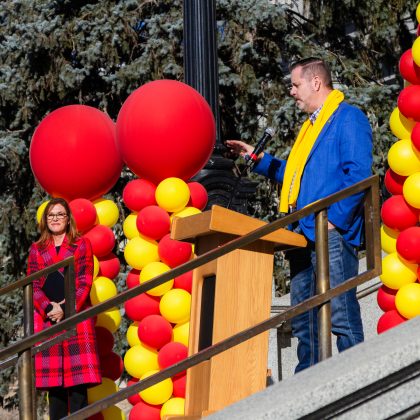 Weston Kurz, presidente de la Asociación de Escuelas Privadas de Colorado, calificó el próximo crédito fiscal federal como un «cambio radical» durante la manifestación a favor de la libertad de elección escolar que tuvo lugar el martes en el Capitolio del Estado de Colorado. (Foto de Matt Walker)