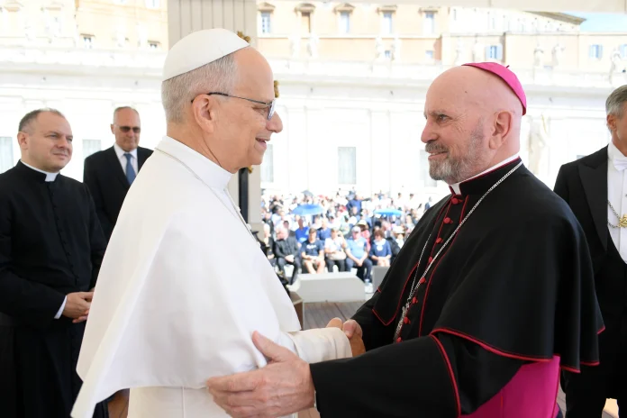 En una visita reciente a Roma para las canonizaciones de san Carlo Acutis y san Pier Giorgio Frassati, el arzobispo de Denver, Samuel J. Aquila, tuvo la oportunidad de encontrarse con el papa León y le aseguró las oraciones de la Arquidiócesis de Denver por él y por su nuevo ministerio.