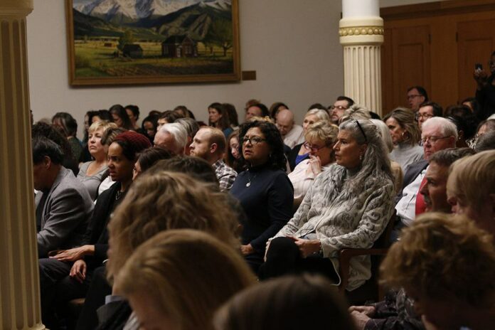 Varias salas extras de espera fueron necesarias para sentar a los cientos de personas que llegaron a testificar a favor y en contra de la propuesta HB 19-1032.