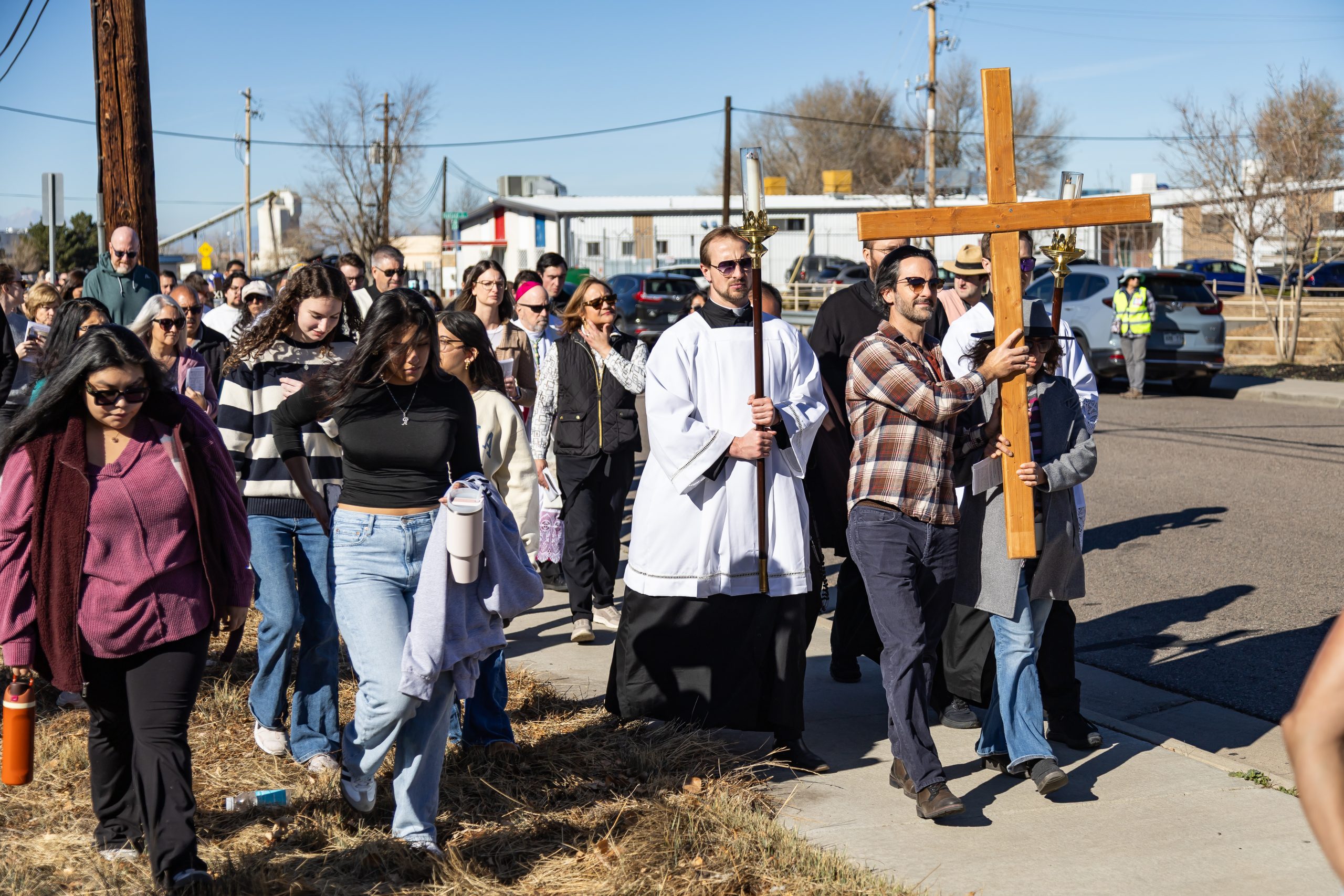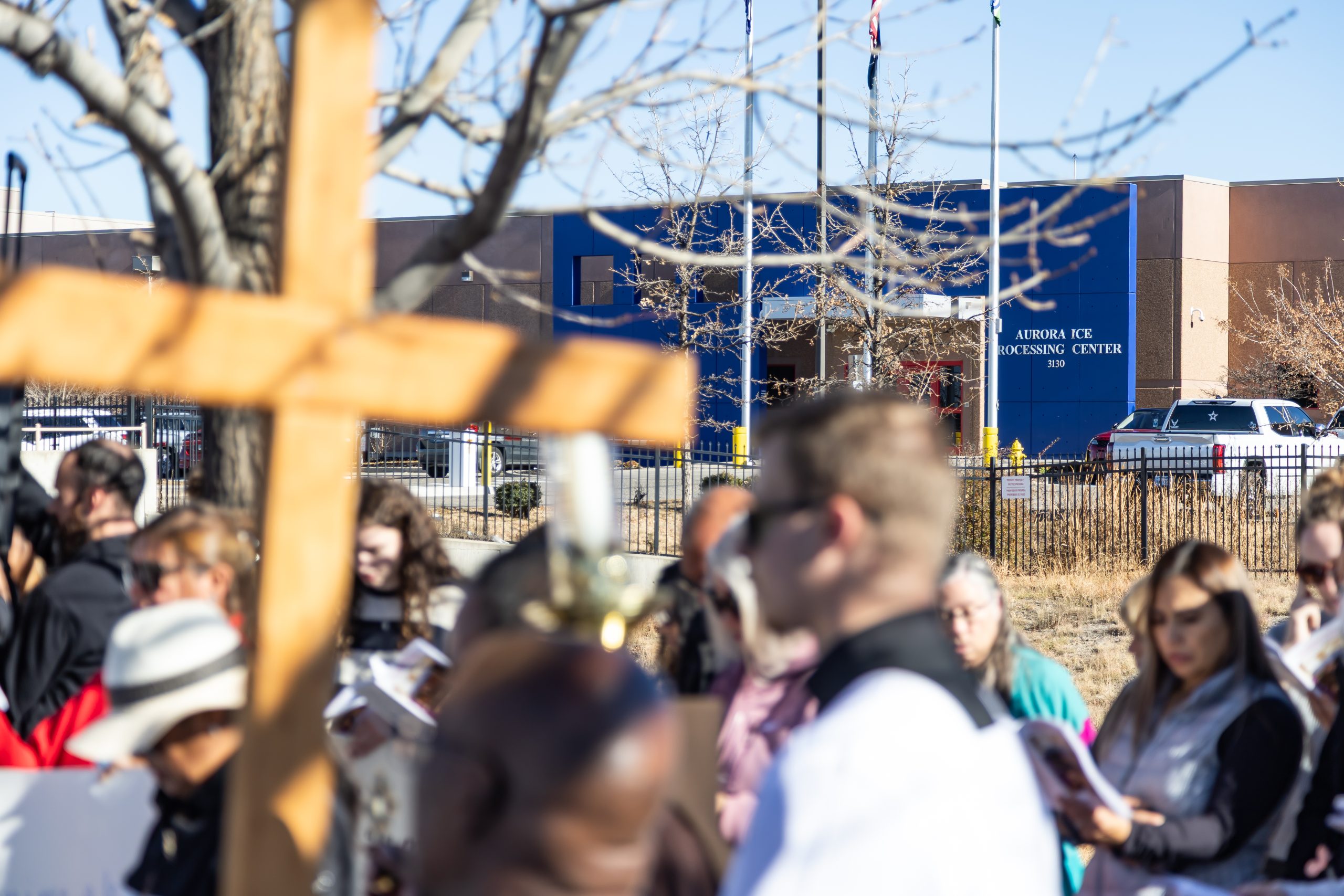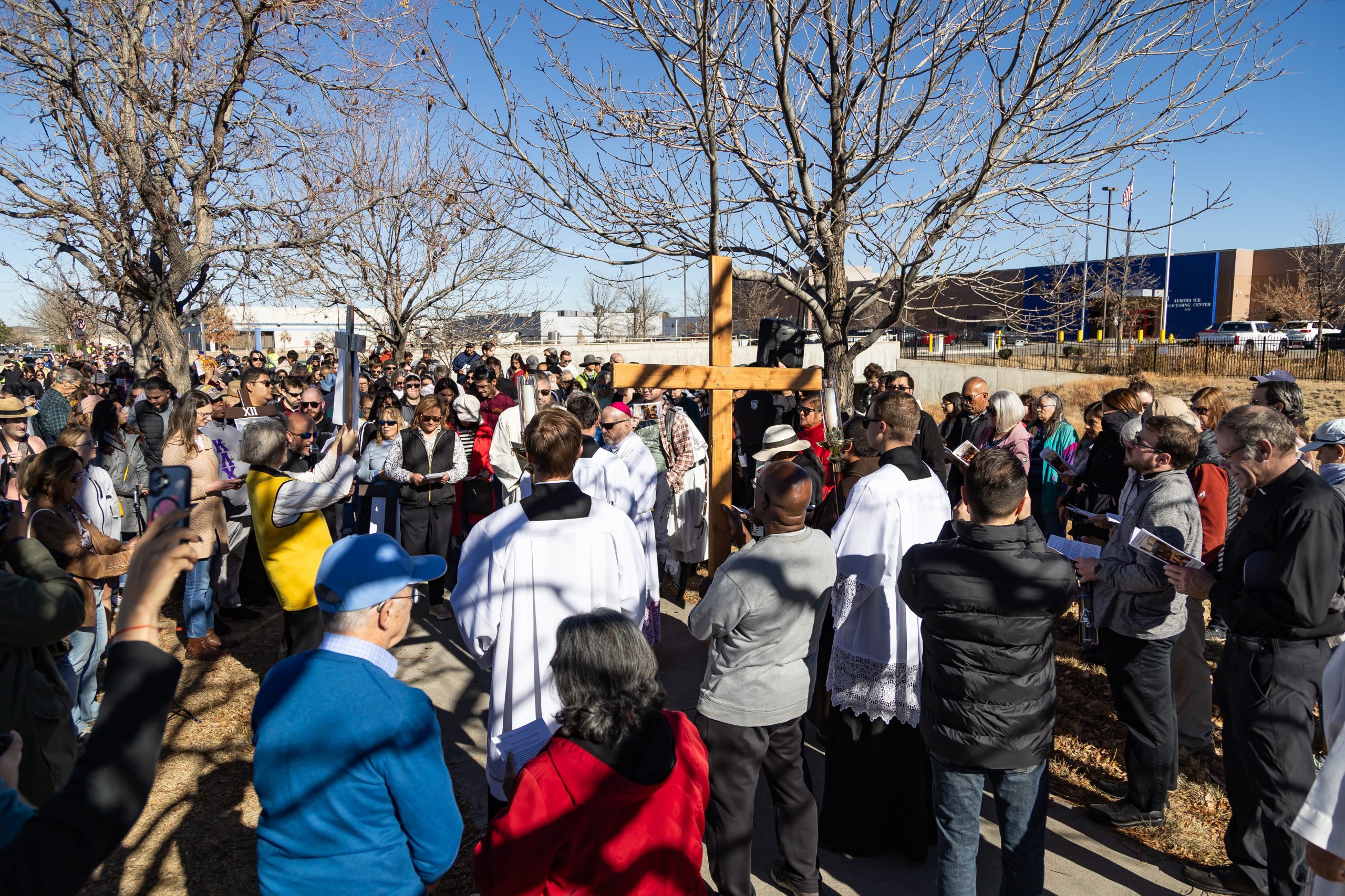 Guiados por el arzobispo Samuel J. Aquila y el obispo Jorge Rodríguez, y convocados por el Comité de Atención Pastoral a los Migrantes, cientos de fieles de más de 36 parroquias locales se reunieron en una oración ferviente y una procesión pacífica alrededor del centro de detención GEO de ICE en Aurora, contemplando el camino de la cruz de Jesús, su camino hacia la crucifixión para salvar a cada uno de los hijos de Dios.