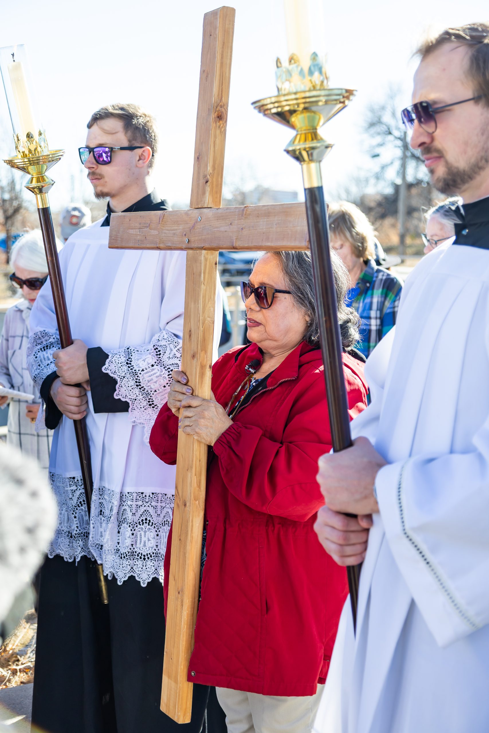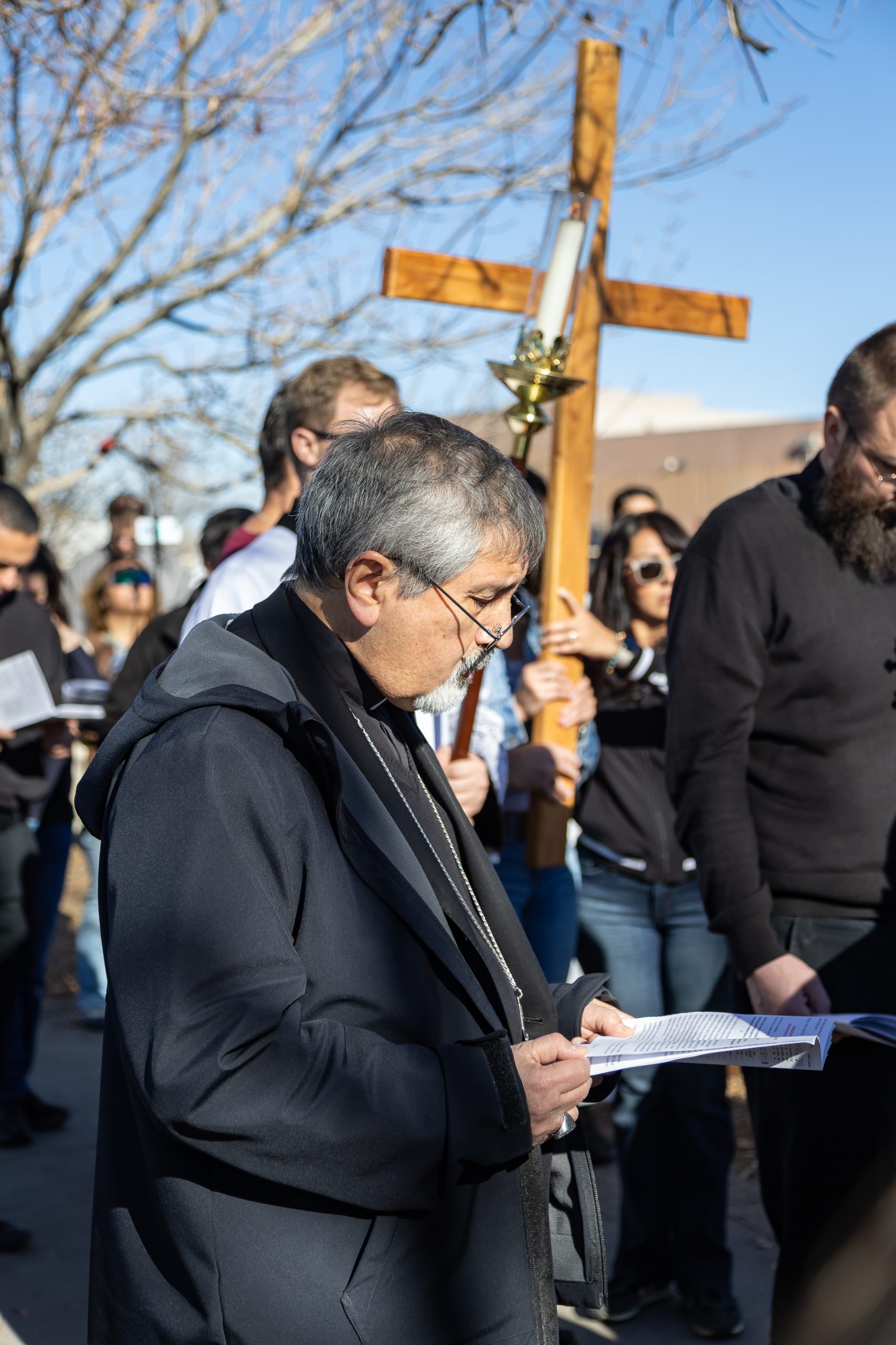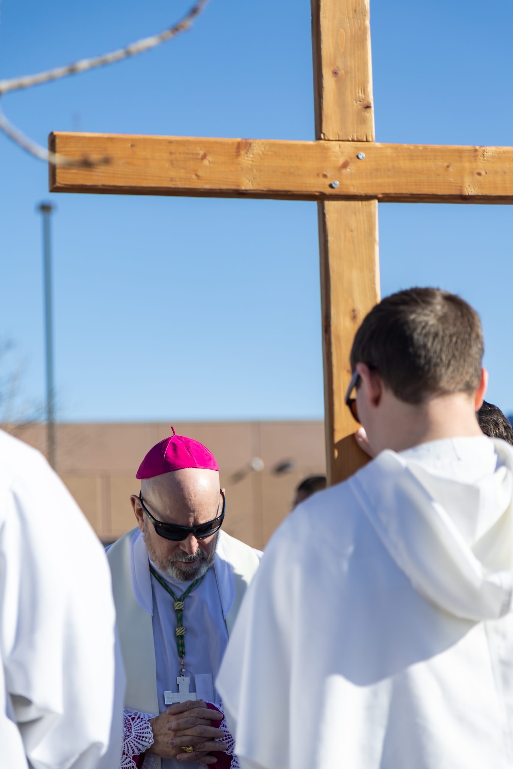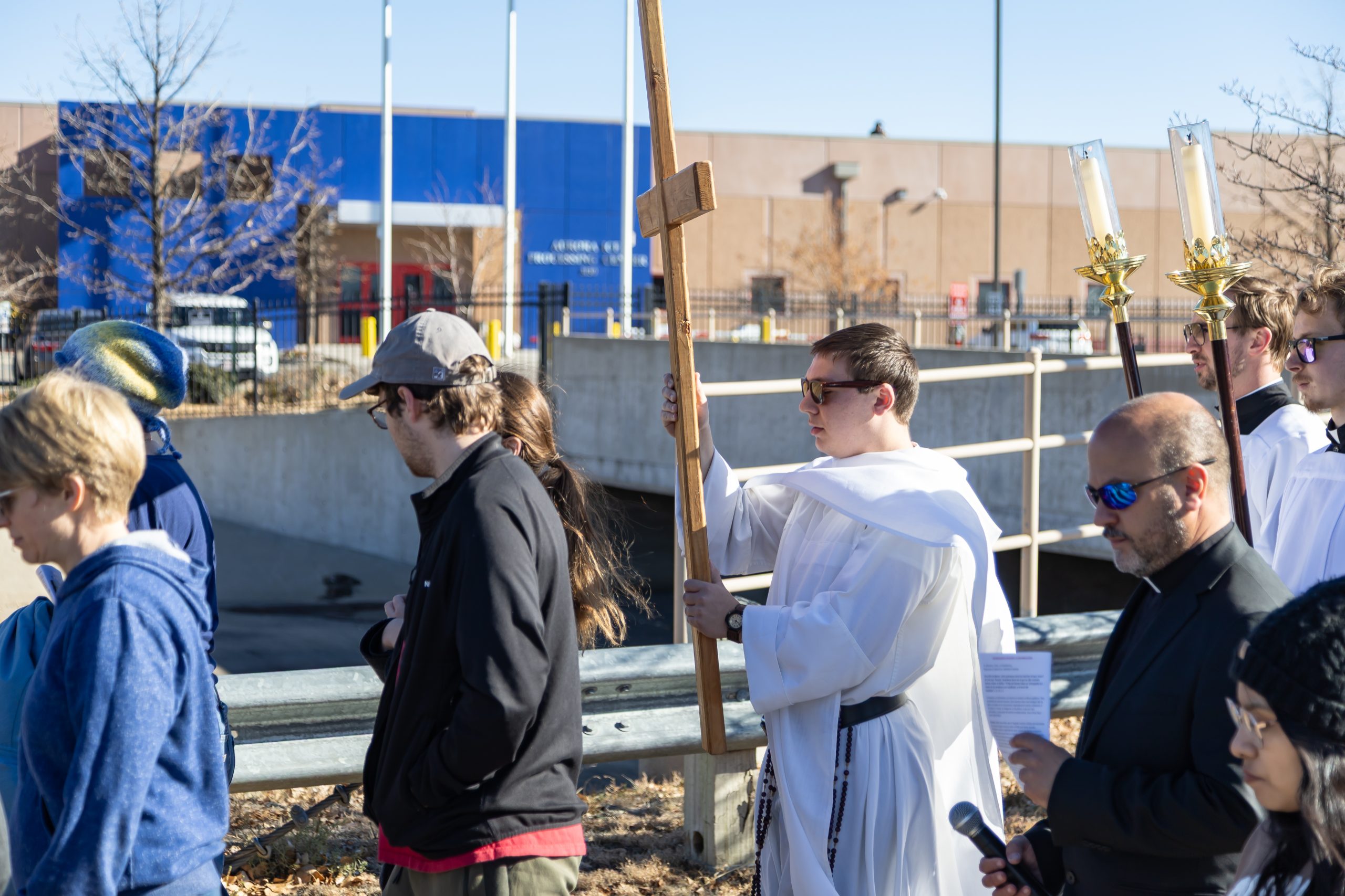 Guiados por el arzobispo Samuel J. Aquila y el obispo Jorge Rodríguez, y convocados por el Comité de Atención Pastoral a los Migrantes, cientos de fieles de más de 36 parroquias locales se reunieron en una oración ferviente y una procesión pacífica alrededor del centro de detención GEO de ICE en Aurora, contemplando el camino de la cruz de Jesús, su camino hacia la crucifixión para salvar a cada uno de los hijos de Dios.