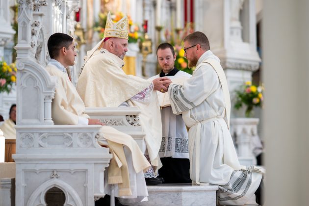 En medio de esa oscuridad, un rayo de luz —o, mejor dicho, dos rayos— brilló en el corazón de Denver el pasado sábado, cuando el arzobispo Samuel J. Aquila ordenó a los padres Daniel Viana Pereira y Paolo Mori como sacerdotes de la Arquidiócesis de Denver.