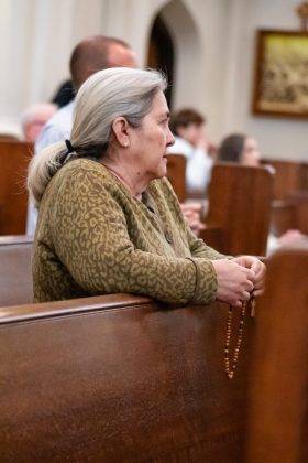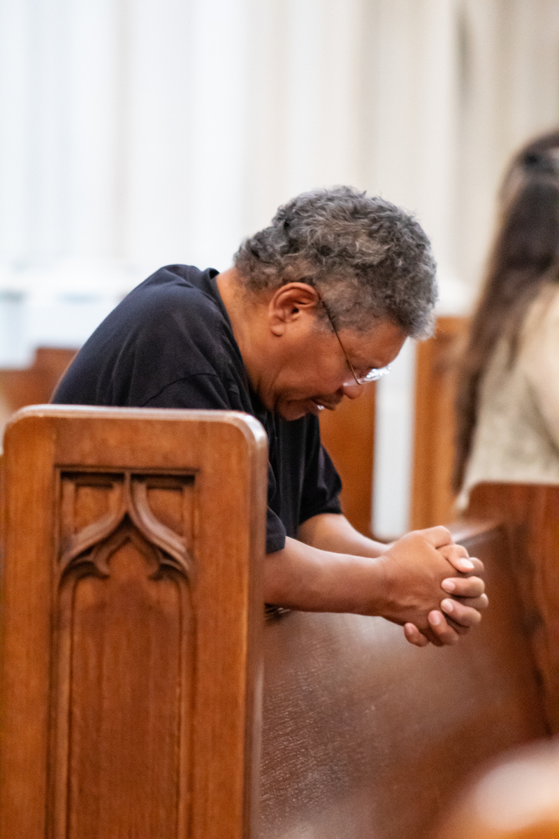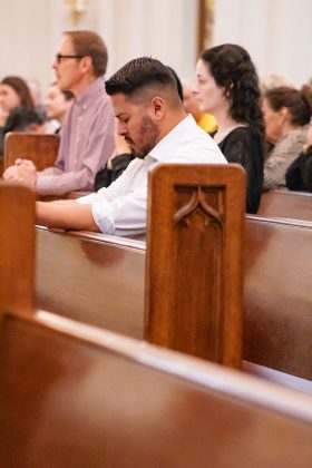 Una hora antes de la Misa, el padre Samuel Morehead, rector de la catedral, dirigió a los presentes en oraciones por el santo padre, tomadas de los ritos de la Iglesia. Después de eso, se rezó el rosario, pidiendo la intercesión de María por el querido papa. Mientras tanto, las campanas de la Catedral Basílica sonaban de forma constante, solemne y lenta, como un lamento en medio del ajetreo del centro de Denver.