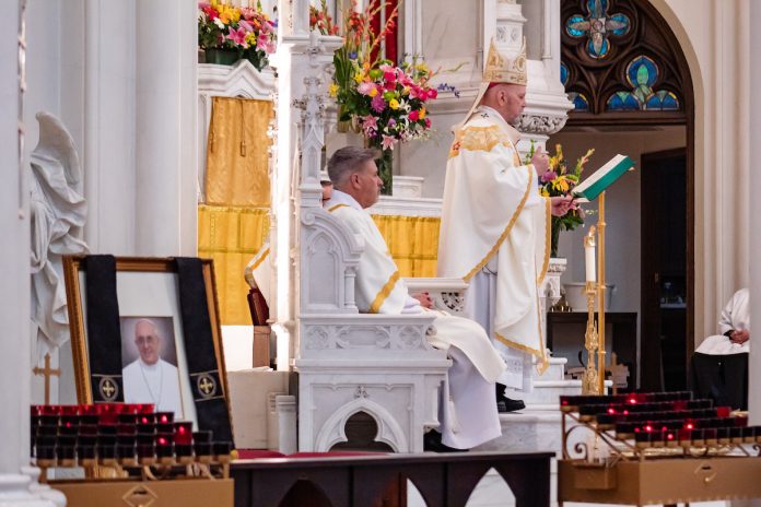 “Esa fue la invitación constante que el papa Francisco nos dio durante sus doce años como nuestro santo padre. Sí, él sabía que era pecador. Sí, sabía que necesitaba la misericordia de Jesucristo, e invitaba a otros a entrar en esa verdad”, explicó el arzobispo. “Y hoy, confiamos en el Señor al celebrar esta Eucaristía, que él también celebra ahora ese don de la vida eterna — la promesa para quienes son fieles a Jesucristo y a su enseñanza. Y elevamos nuestros corazones en gratitud al Padre por el regalo de su vida, por el testimonio que dio, por su sencillez, por su cercanía a quienes estaban en los márgenes de la sociedad”.