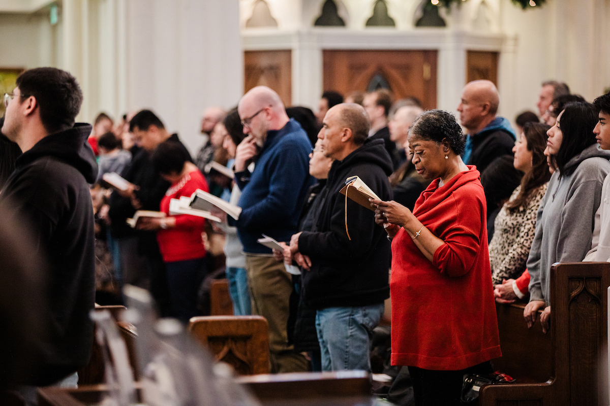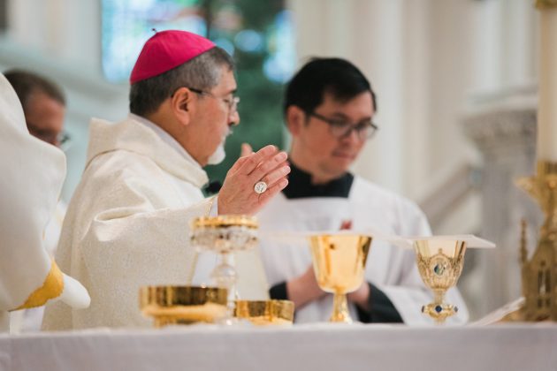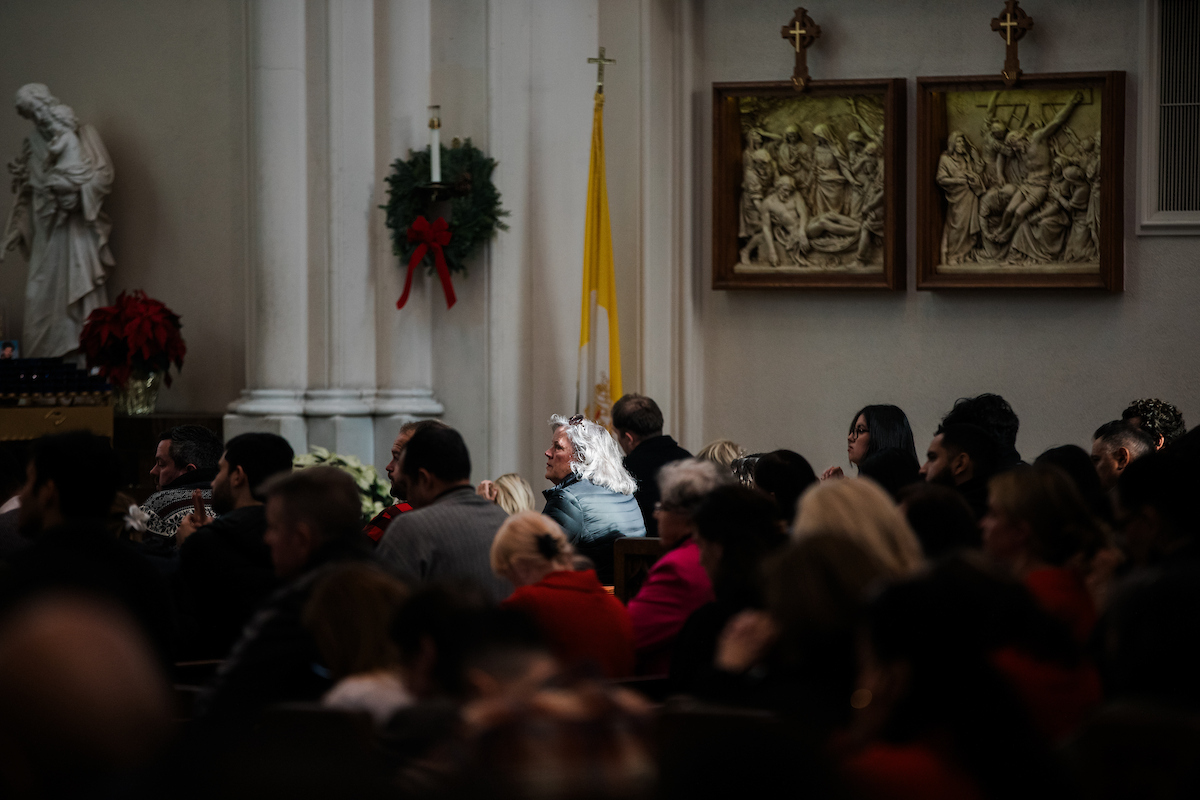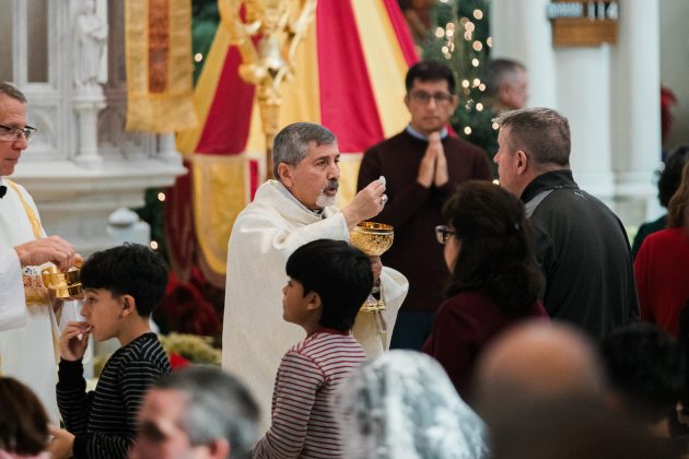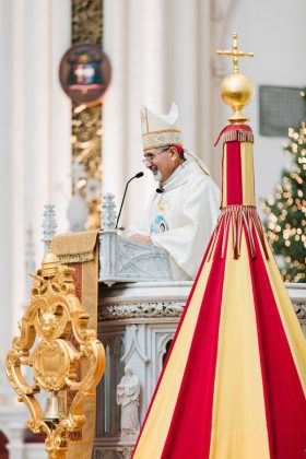 Mientras los fieles se acomodaban en las bancas antes de la Misa en el último domingo del 2025, un seminarista aguardaba al fondo de la catedral, bajo el dosel rojo y amarillo del ombrellino de la Catedral Basílica de la Inmaculada Concepción.
