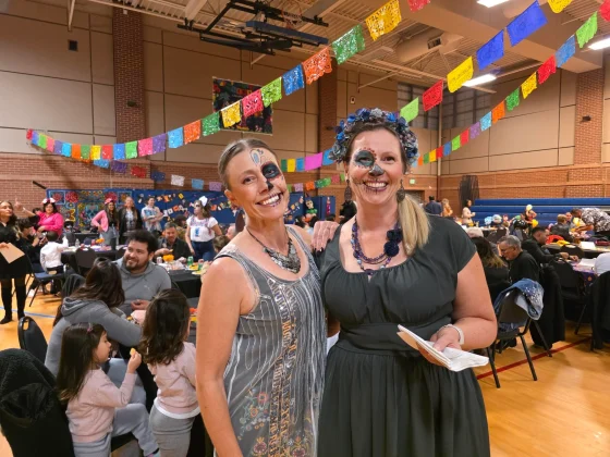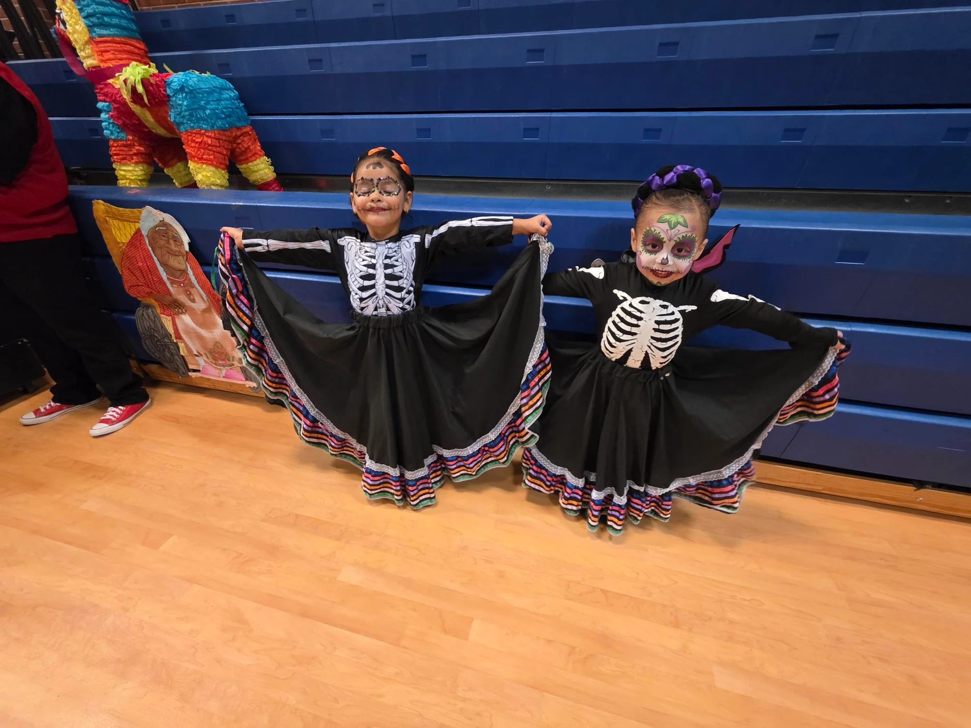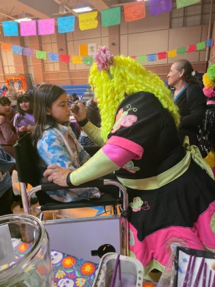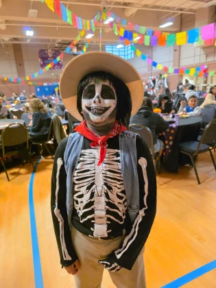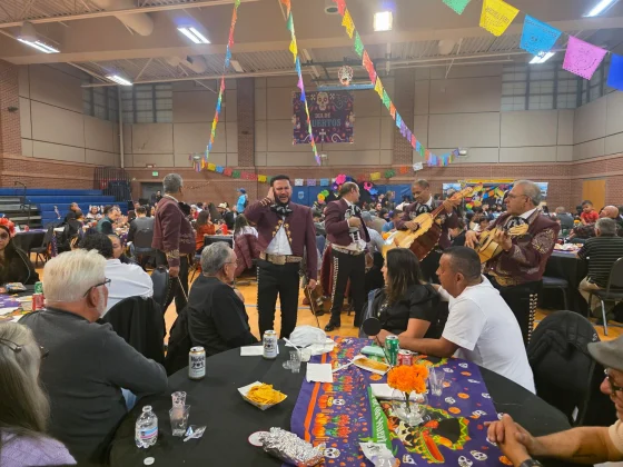 Durante una pausa, el grupo de mariachis empezó a recorrer el gimnasio vestidos con sus trajes tradicionales de charro, y su música, llena de fuerza y alegría, resonaba por todo el lugar. Algunas personas llegaron con el rostro pintado, pero la fila para la pintura de caras se extendió por todo el salón a medida que más niños se apuntaban.