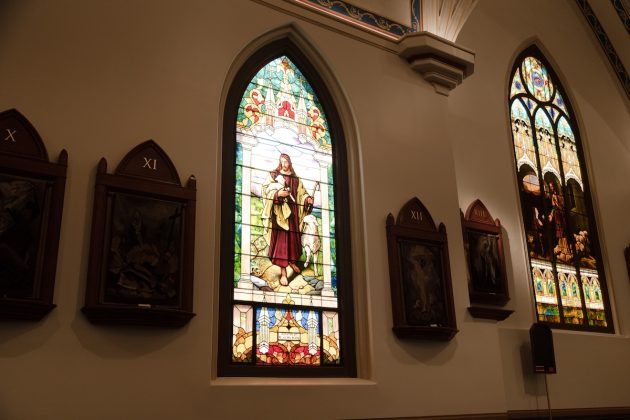 Las ventanas de vidrio de colores y el trabajo de restauración realizado en ellas destacan ese énfasis comunitario de una manera providencial, señaló el padre Tomasz. A medida que el comité de renovación de la parroquia investigaba empresas para ayudar, encontraron que el creador original de las ventanas, Watkins Glass, todavía estaba en funcionamiento. Phil Watkins, el bisnieto del artista que creó las ventanas de vidrio de St. Peter, respondió al llamado, salió de su jubilación y asumió la elevada tarea de restaurar las ventanas.
