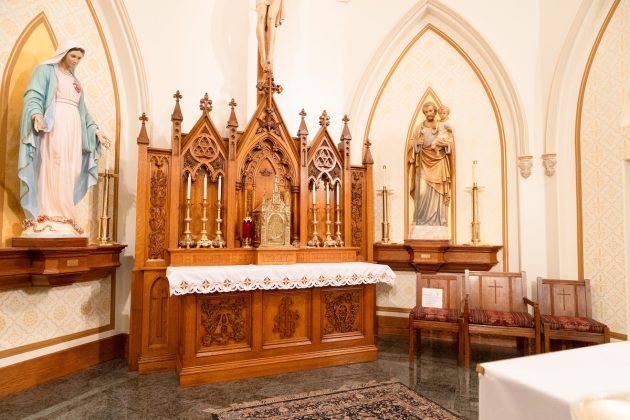 “Todo está dirigido hacia arriba. Los arcos no son redondeados, sino que tienen una punta en la parte superior. Esa es la dirección que la Iglesia está tomando, y eso es lo que estamos tratando de reflejar de manera física”, explicó el padre Tomasz “Nuestra meta es hacia arriba, y la arquitectura de la Iglesia lo refleja para que este sea el lugar que la Iglesia debería ser, cualquier iglesia. Eso es lo que buscamos, hacer esa conexión entre las personas y Dios y hacerlo de manera acogedora”.