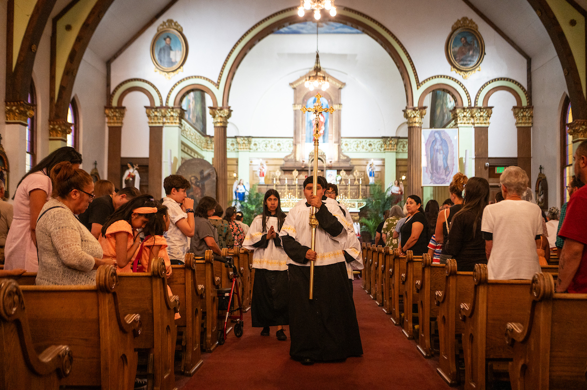Esa noche, madres, padres e hijos se sintieron como en casa en Sacred Heart. A pesar del ruido habitual del creciente barrio de RiNo, con sus bares, clubes y residentes irreligiosos, la parroquia fue una luz para el vecindario, como siempre lo ha sido. Atrajo y nutrió a una sierva de Dios, Julia Greeley, hace más de un siglo, y sigue siendo el hogar de cientos de personas, ya sean como Marshall y su esposa, que aún llegan en coche desde los suburbios, familias hispanas locales recién llegadas a la ciudad o los pocos jóvenes profesionales que han llegado de los apartamentos de los alrededores.