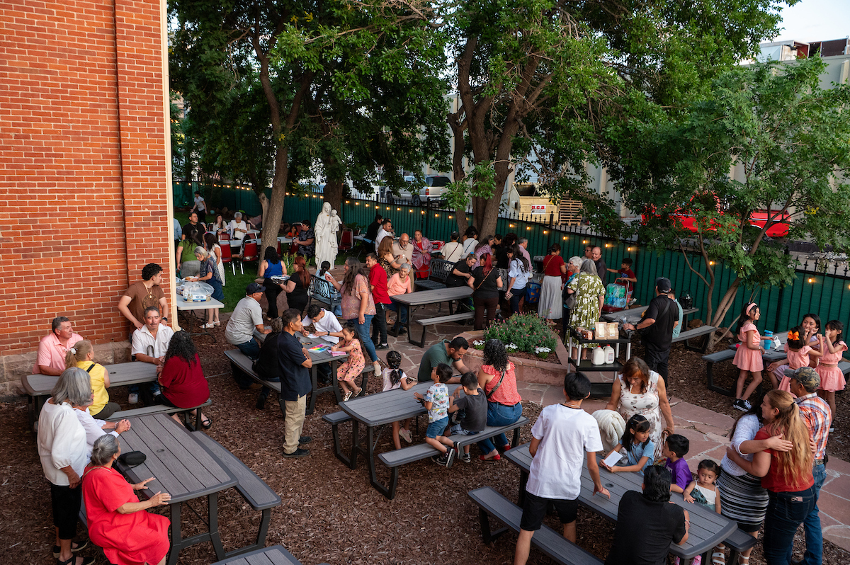 Y no es el único. Esa noche, muchas personas comentaron haber conducido desde los suburbios de Denver para llegar a una parroquia que adoran. El Jardín Mariano estaba abarrotado. Decenas de fieles disfrutaban de comida casera, un testimonio de la familia de Sacred Heart, ya que casi todos consideran la parroquia su hogar, ya sea que crecieron cerca o emigraron del extranjero.