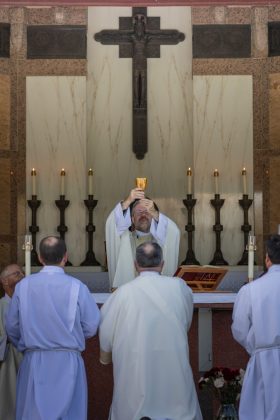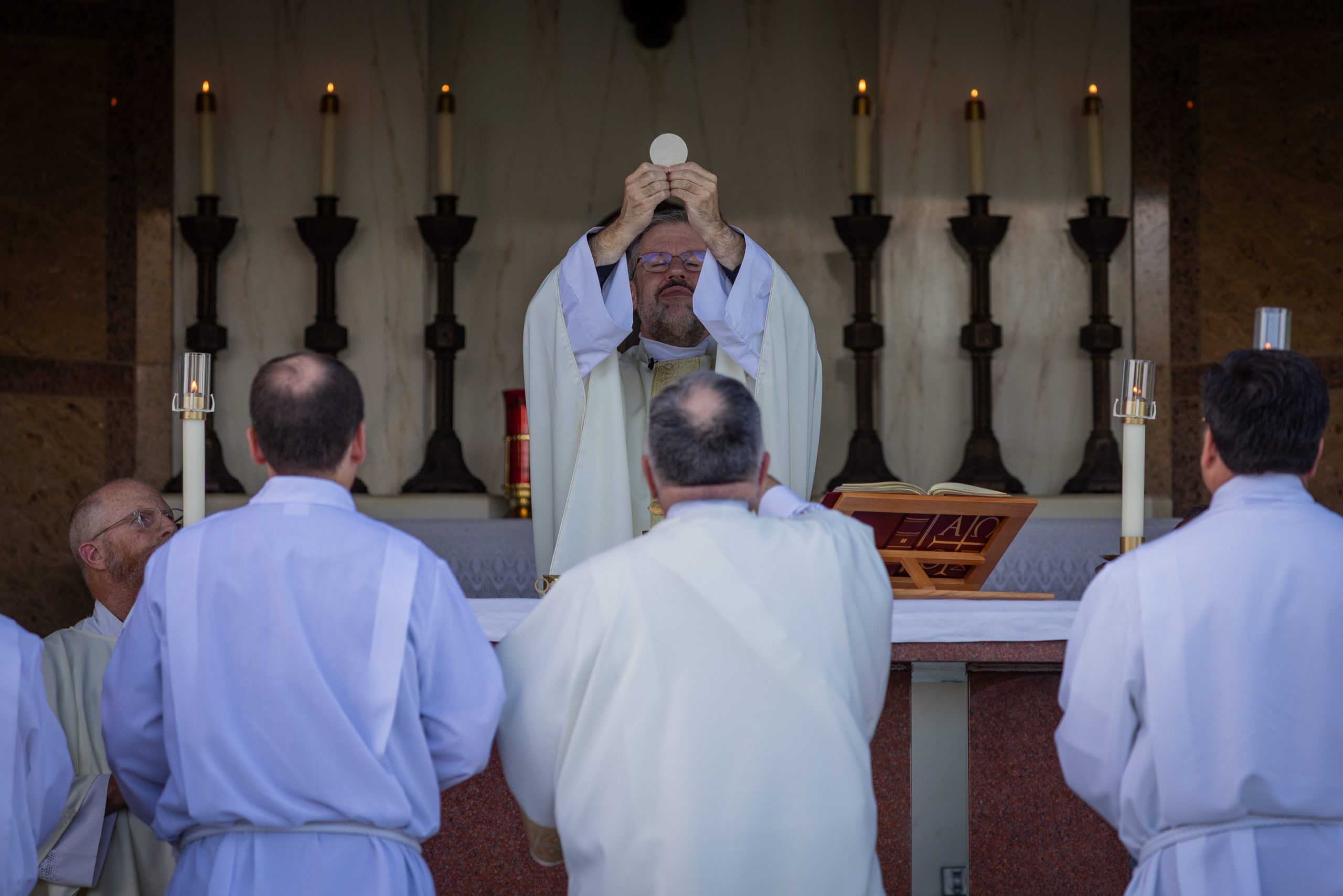 Durante la liturgia eucarística, como en toda Misa, se despliega un signo poderoso. El sacerdote eleva el Cuerpo de Cristo, mientras el diácono sostiene el cáliz a su lado. Juntos encarnan la plenitud de la entrega de Cristo: el sacerdote como cabeza, el diácono como servidor, unidos en un mismo acto de sacrificio. En ese momento, el sacerdote pronuncia, y el diácono reza en silencio: “Por Cristo, con él y en él…”, una oración que resume toda su vocación. Brota entonces la gratitud: “Jesús, gracias por llamarme a este don, por permitirme compartir tu sacrificio y tu servicio. Transfórmame a través de este ministerio”.