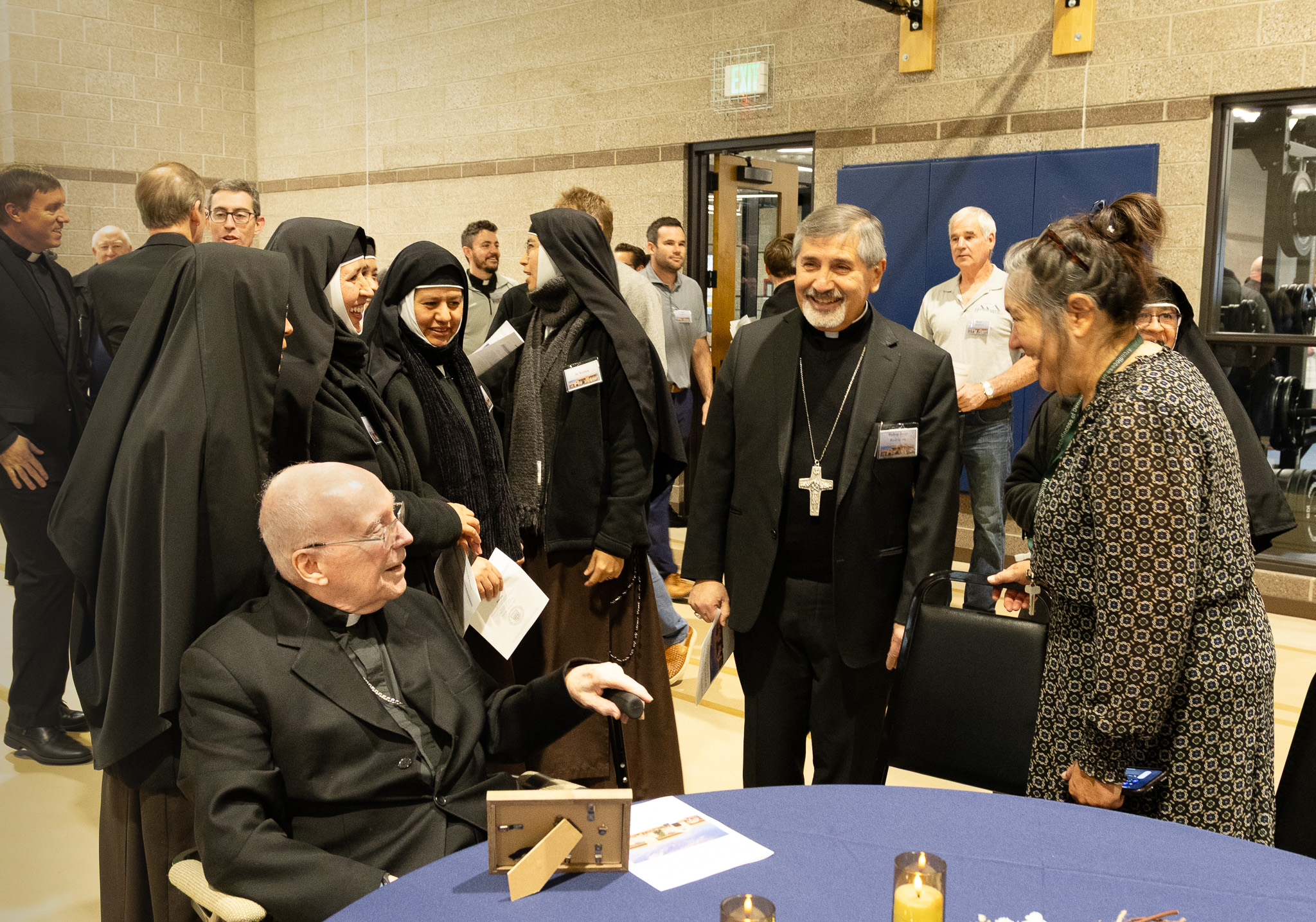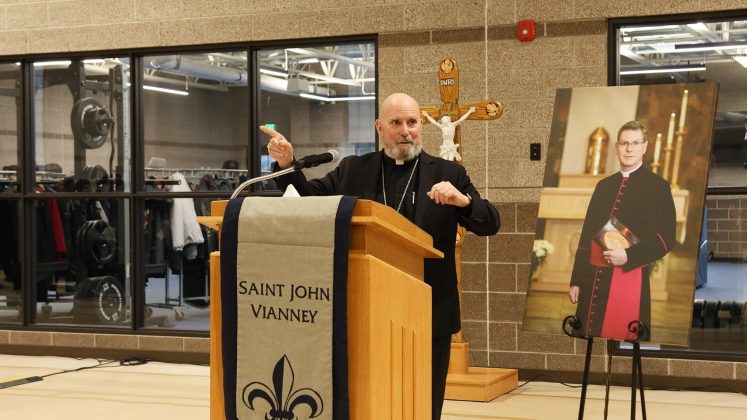 “De esa capilla empiezan a brotar pequeñas semillas de distintas piezas arquitectónicas. Está la extensión de los pasillos de los dormitorios. Ahora vemos la Casa Prophet Elijah para los sacerdotes jubilados. La residencia del arzobispo, la residencia del cardenal, todos estos edificios toman su semilla de la capilla”, explicó. “¿Y qué hay en el corazón de la capilla? El altar y el sagrario. Así que podríamos pensar que este gimnasio es un nuevo centro de formación. Y yo diría: ‘No, no lo es’. El centro de la formación de este campus, de este seminario, de todo nuestro trabajo aquí es la capilla”.
