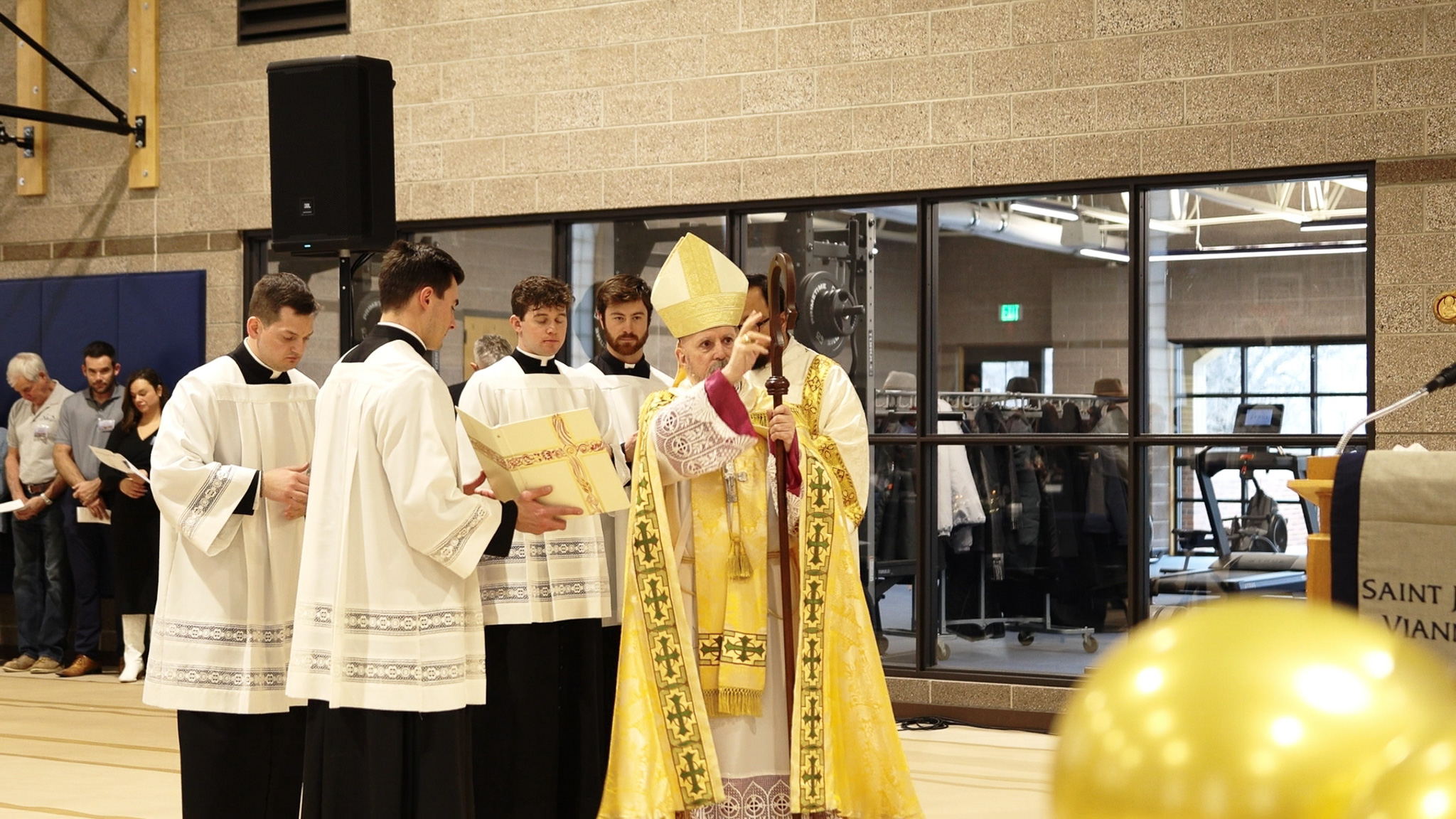 “El objetivo principal aquí, y creo que eso es lo que se revela en esta arquitectura, es ver que este gimnasio debe llevarte directamente al altar. Este gimnasio debe llevarte directamente al altar y al sagrario, donde Dios es glorificado”, afirmó. “Y el altar se convierte entonces en el centro de cada edificio de este campus: las aulas donde estudiamos y enseñamos, los otros espacios donde caminamos, convivimos, nos recreamos y descansamos. Este gimnasio está pensado como una extensión, un recordatorio y un punto de referencia hacia el centro de nuestra vida, que es Jesús. Así que ojalá este gimnasio glorifique aún más a Dios, de una manera en que Dios todavía no había sido glorificado en este campus por su uso. Así que, muchachos, úsenlo. Úsenlo bien”.