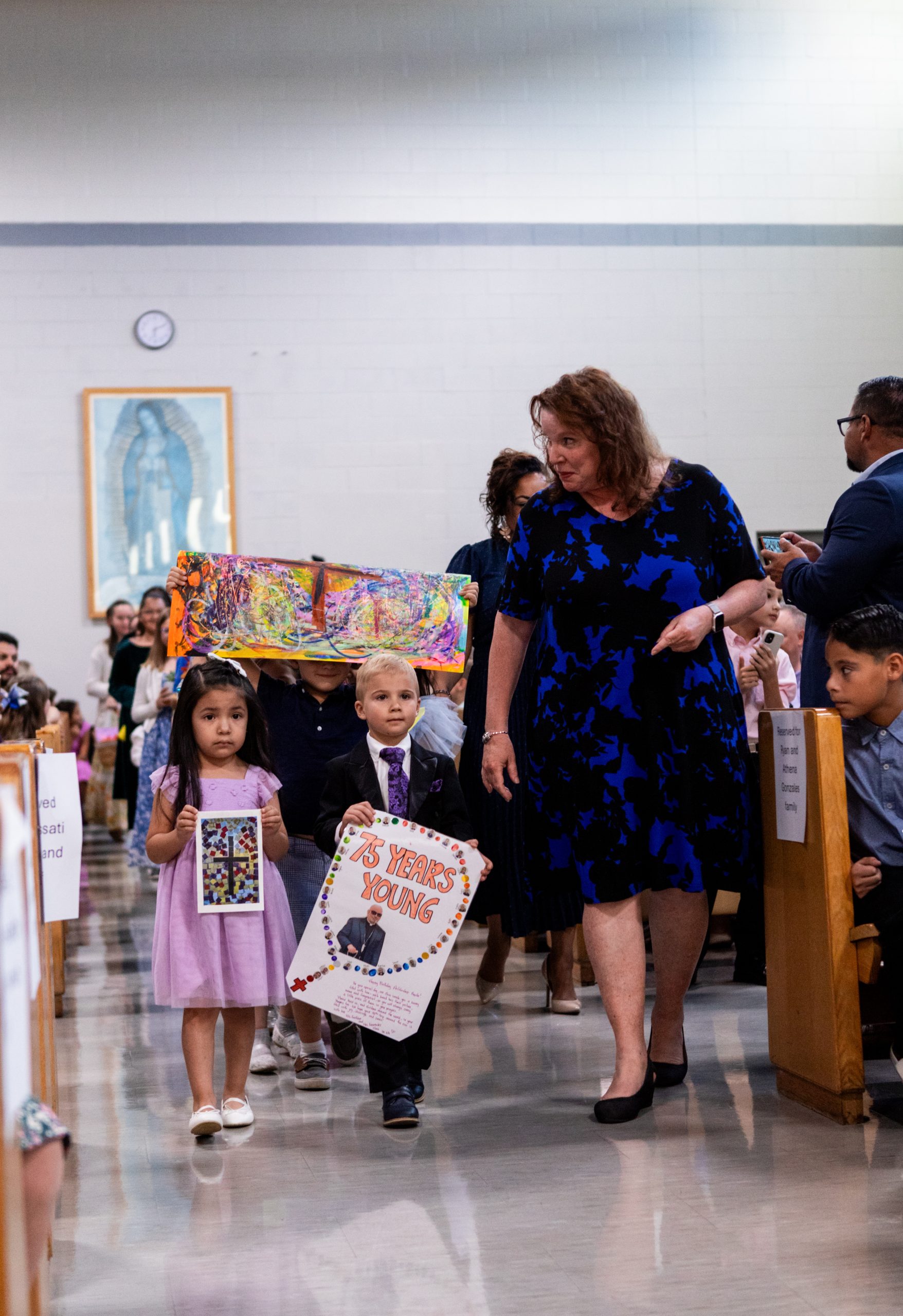 Al finalizar la Misa, el arzobispo Samuel fue sorprendido por estudiantes de la escuela, quienes le entregaron obsequios hechos a mano por cada clase como regalo de cumpleaños y en agradecimiento por el apoyo brindado a la institución. Al concluir la celebración eucarística, los asistentes tuvieron la oportunidad de saludarlo y tomarse fotos con él.