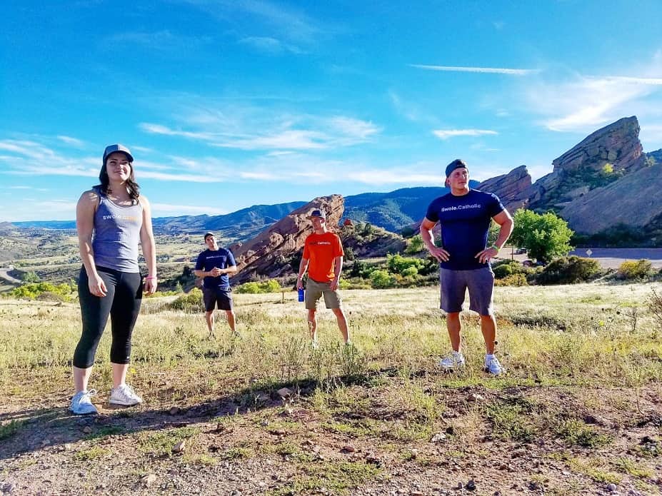Para unirse a un grupo o un entrenamiento visite su sitio web: https://www.swolecatholic.com/donate o búsquelos en Facebook: Swole.Catholic.