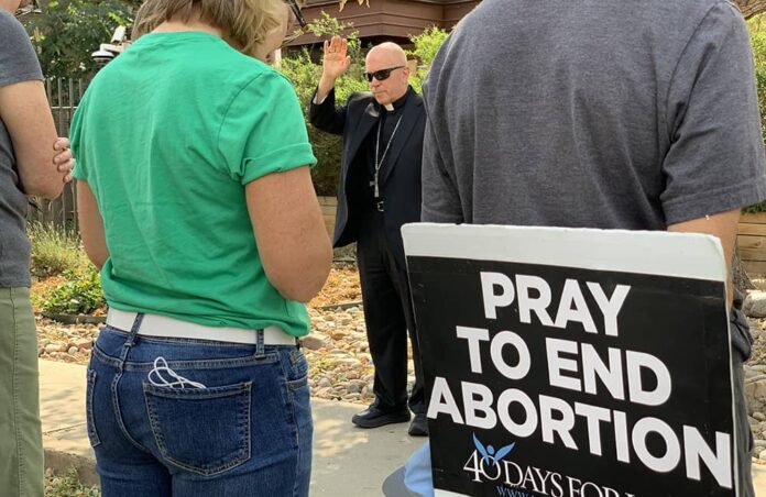 El 23 de septiembre el arzobispo Samuel Aquila se unió a un grupo provida para rezar el rosario afuera de una clínica de abortos en bolder, dando inicio a la campaña de 40 Días por la Vida. (Fotos de Aaron Lambert)