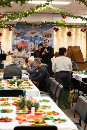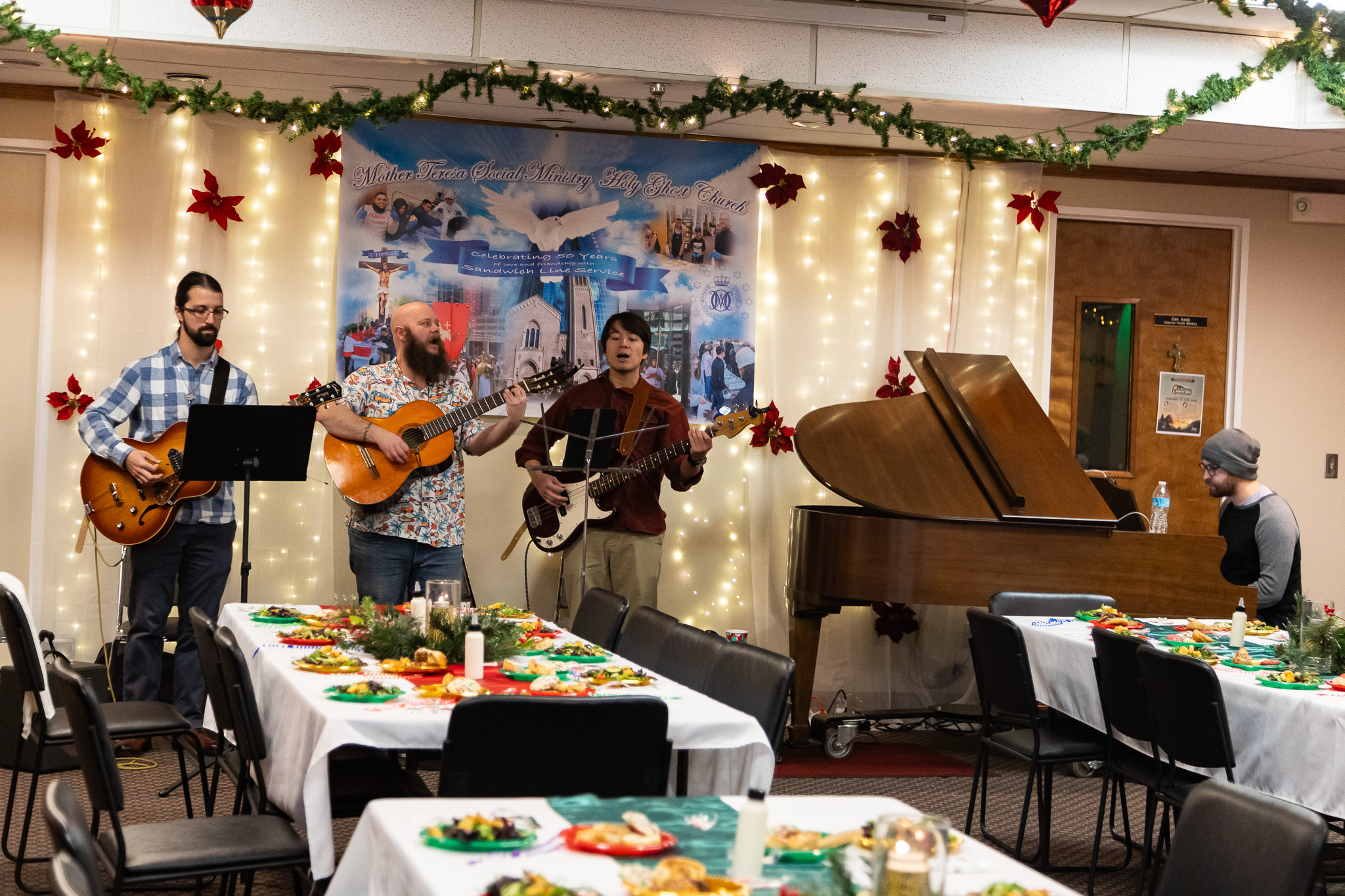 El evento anual tiene como objetivo brindar un lugar seguro, cálido y digno de una comida comunitaria antes de las fiestas. Parte del sólido ministerio social de la parroquia, el Almuerzo de Navidad ofreció a los asistentes una comida casera, música en vivo, suministros donados y una comunidad cálida, todo hecho posible gracias a la dedicación de las docenas de voluntarios involucrados.