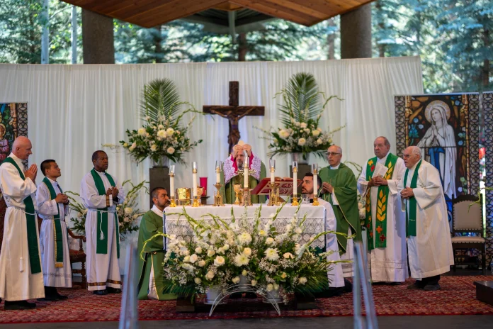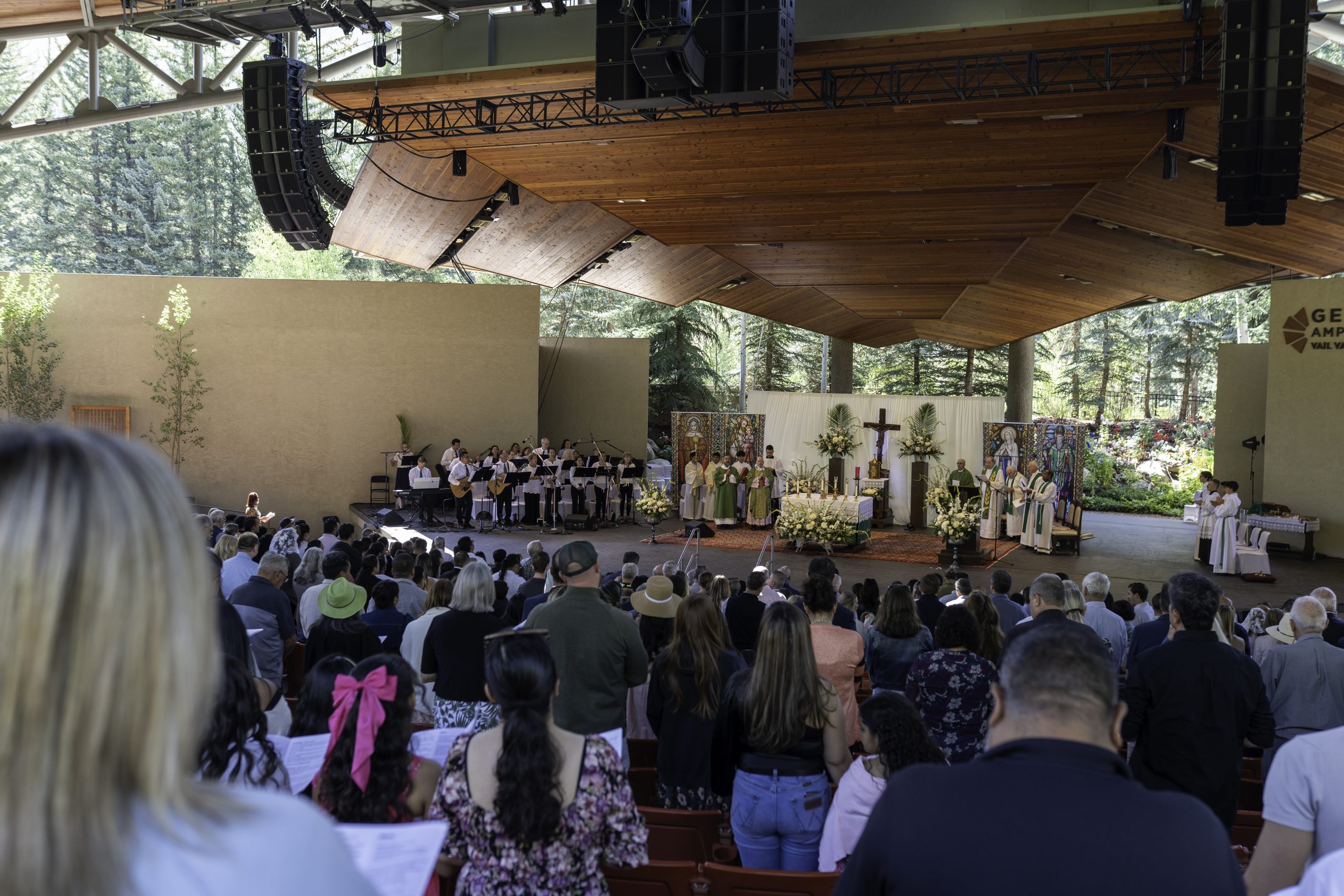 La luz de la mañana se derramaba sobre los picos de la cordillera Gore cuando fieles católicos de todo el condado de Eagle comenzaron a llegar al Anfiteatro Gerald R. Ford el pasado 10 de agosto, llenando el recinto al aire libre con oraciones y cantos. Por primera vez en la historia de este anfiteatro, se celebró allí la Sagrada Eucaristía, presidida por el arzobispo Samuel J. Aquila.