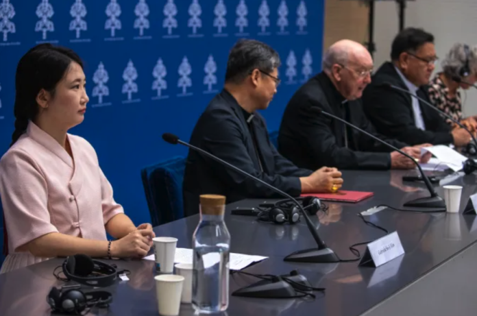 En la comparecencia ante los medios de esta mañana en la Oficina de Prensa de la Santa Sede, participaron el cardenal Kevin Farrell, prefecto del Dicasterio para los Laicos, la Familia y la Vida y Mons. Peter Soon-Taick Chung, arzobispo de Seúl y presidente del Comité Organizador Local de Seúl 2027.