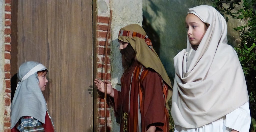Comencemos por México y las Posadas Navideñas, una tradición en la que los fieles van de casa en casa cantando y pidiendo un lugar para que María pueda dar a luz al Niño Dios. Se hace con un pesebre viviente y María y José caminan con los peregrinos.