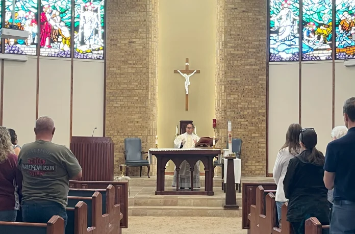 “Las palabras se quedan cortas”, reconoció el padre Adam Bradshaw en su homilía, “pero tenemos la Palabra”.
