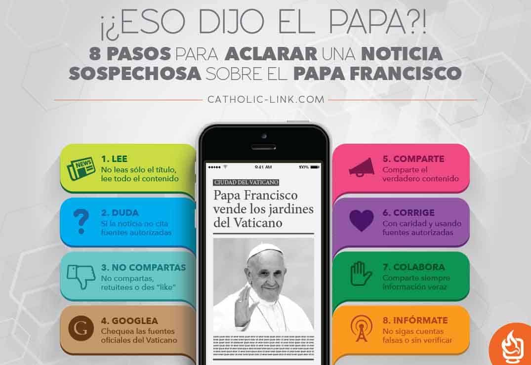 Es por ello que hemos querido en este post ayudarles a aclarar cómo saber si determinadas palabras las dijo o no el Papa y cuál es su contexto. Acá les dejo algunos tips (apoyando la infografía), que hemos tenido que aprender a la fuerza, en este tiempo, donde la información fluye con tanta rapidez: