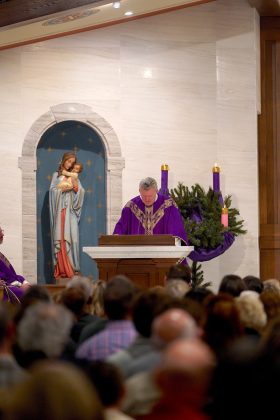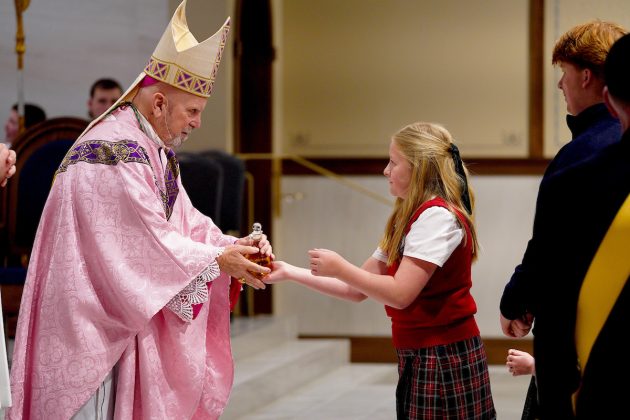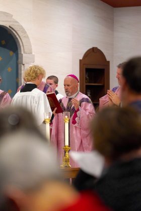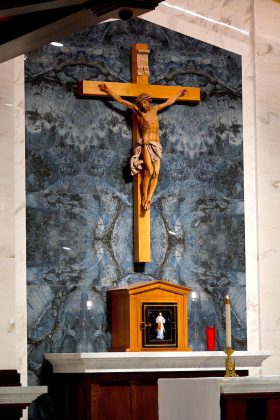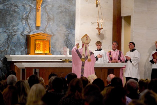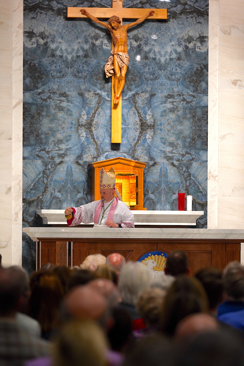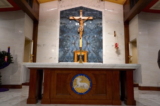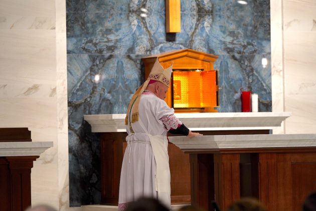 “Hoy, al dedicar este altar, el altar siempre nos recuerda el único sacrificio: el sacrificio de Jesucristo”, dijo el arzobispo. “Cada vez que celebramos la Eucaristía, celebramos a Dios con nosotros y el cumplimiento de su promesa”.