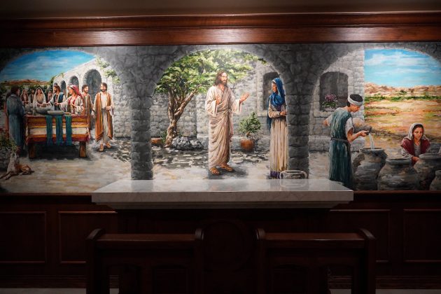 “Hay algo que la gente suele olvidar: aprendemos a través de los sentidos. ¿Estamos dando a las personas la oportunidad de ver algo bello, cosas que impacten el alma? Por eso, las pinturas de Casey Batt, el sagrario de la Divina Misericordia, los vitrales y todo el trabajo del techo son fundamentales”.