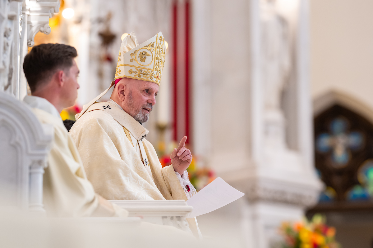 El arzobispo Aquila exhortó a los sacerdotes recién ordenados a un servicio humilde y de oración al pueblo de Dios. (Foto: Dan Petty)