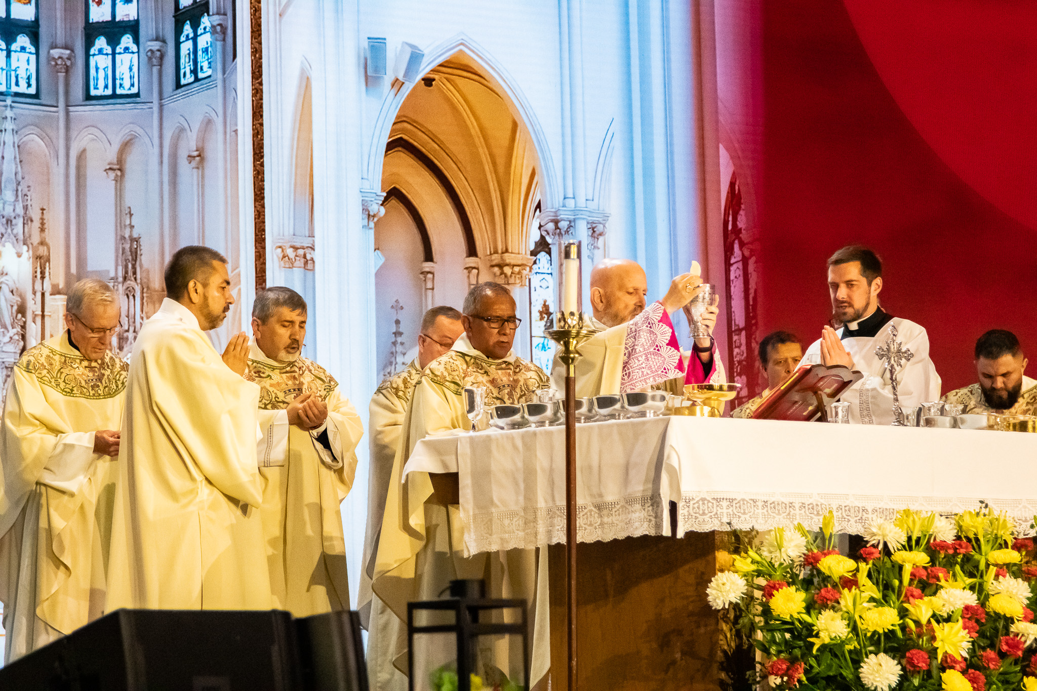 “Nuestra ferviente esperanza como obispos es que el amor por la Eucaristía y la fe en la presencia real de Jesús en la Eucaristía se enciende en los corazones de los fieles”, dijo el arzobispo al principio de su homilía, refiriéndose al Avivamiento Eucarístico. “Cuando venimos a Misa, debemos preparar nuestros corazones para adorar al Padre a través, con, y en Jesús. En su único sacrificio reconocemos y recibimos el amor del Padre por nosotros en Jesús, en la Eucaristía”, agregó.