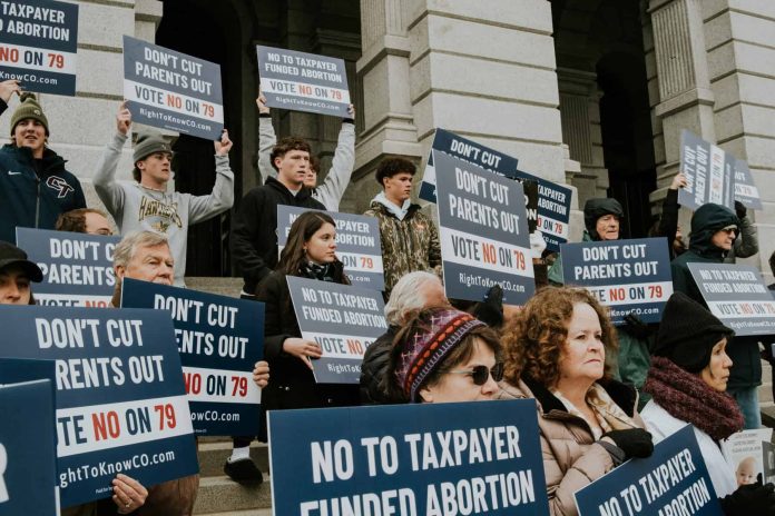 El miércoles 30 de octubre, profesionales médicos de la cohorte de Colorado de la Asociación Estadounidense de Obstetras y Ginecólogos Provida se reunieron con miembros de la comunidad provida frente al capitolio estatal para pronunciarse en contra de la Enmienda 79.