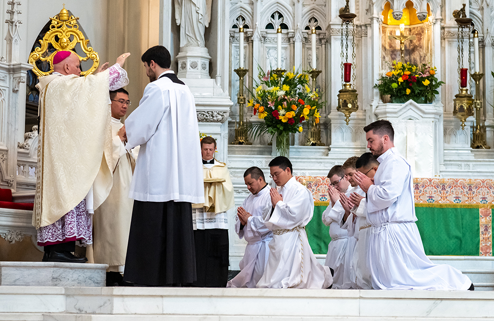 «Oímos al Señor hablar a Jeremías en la primera lectura: ‘Yo te formé. Yo te consagré. Yo te constituí. Te conocí en el seno materno’. Y eso es verdadero para cada uno de ustedes: que el Señor los ha llamado a cada uno de ustedes», dijo el arzobispo a los hombres. «Han escuchado ese llamado dentro de su corazón. Y puede que haya habido cierta resistencia a él, la misma resistencia de la que habla Jeremías. Pero el Señor le recuerda: ‘Yo te envío. Yo te ordeno. Yo estoy contigo para librarte'».