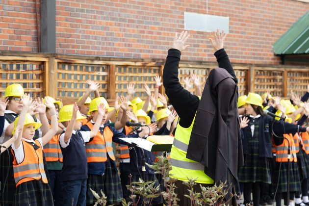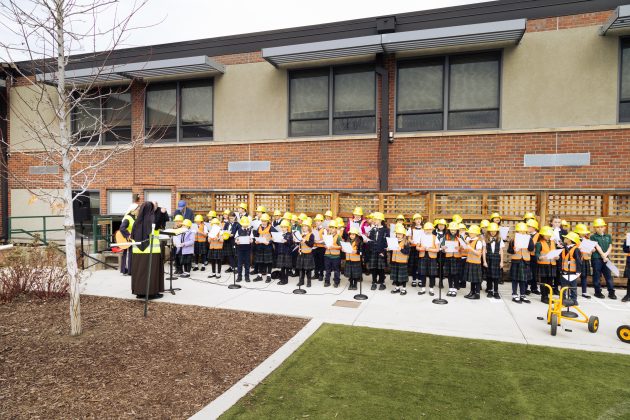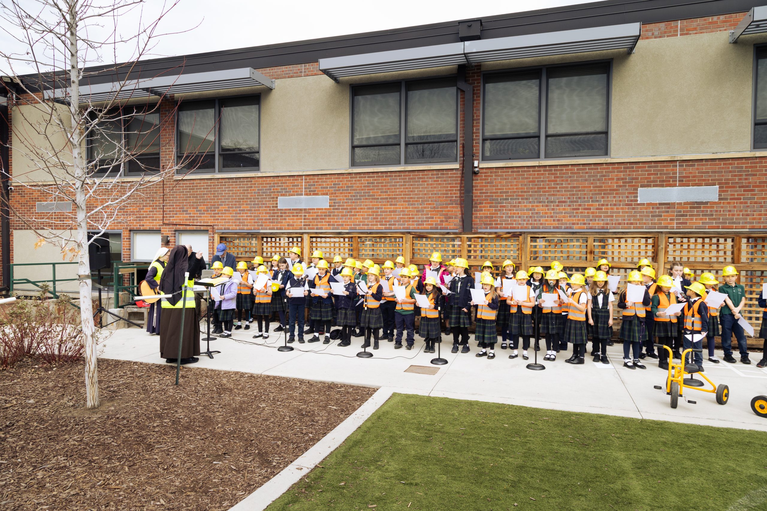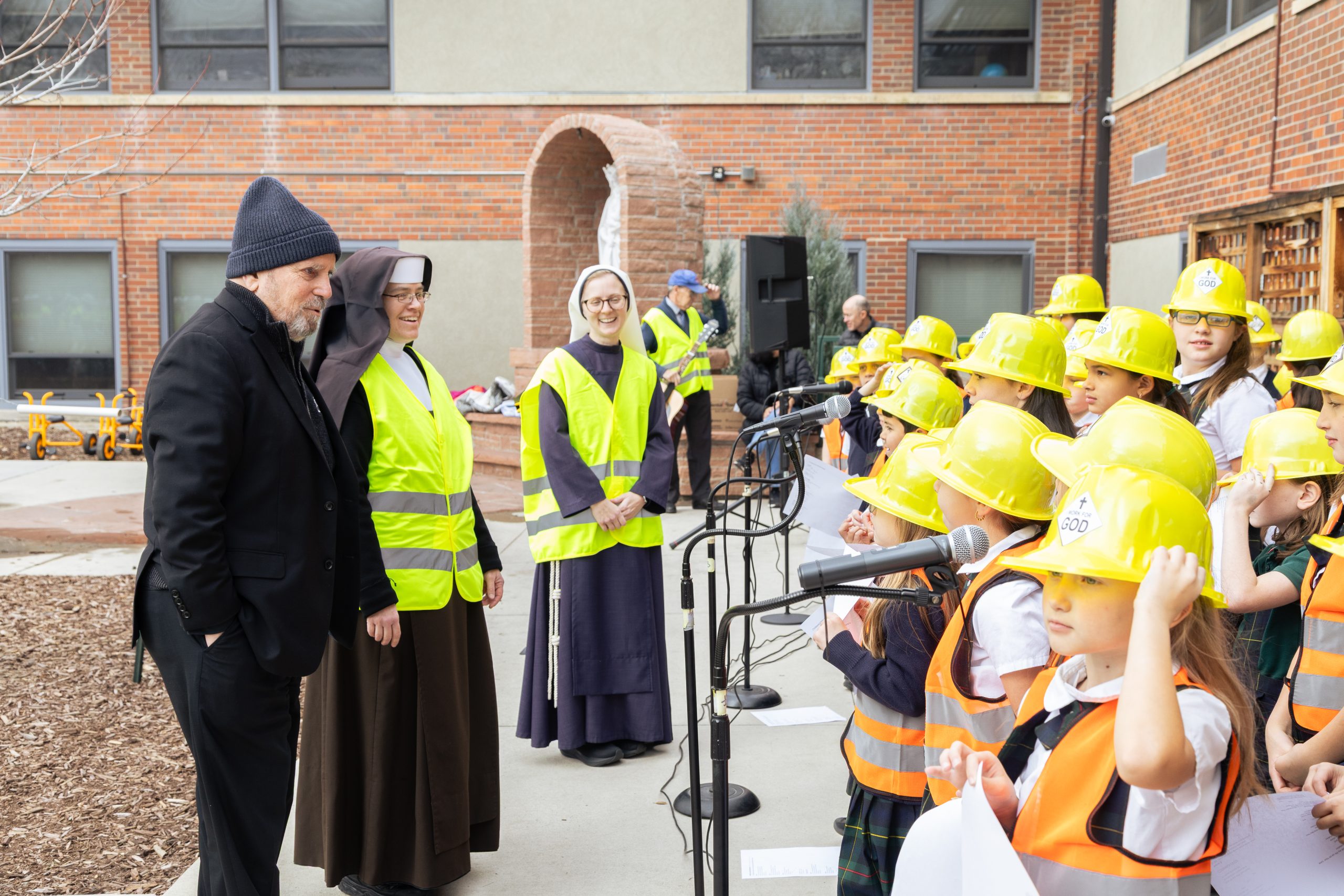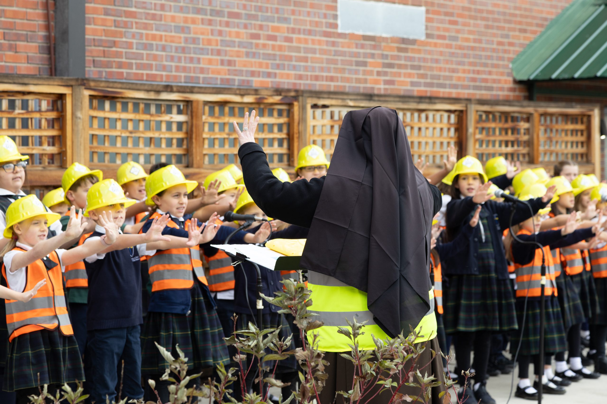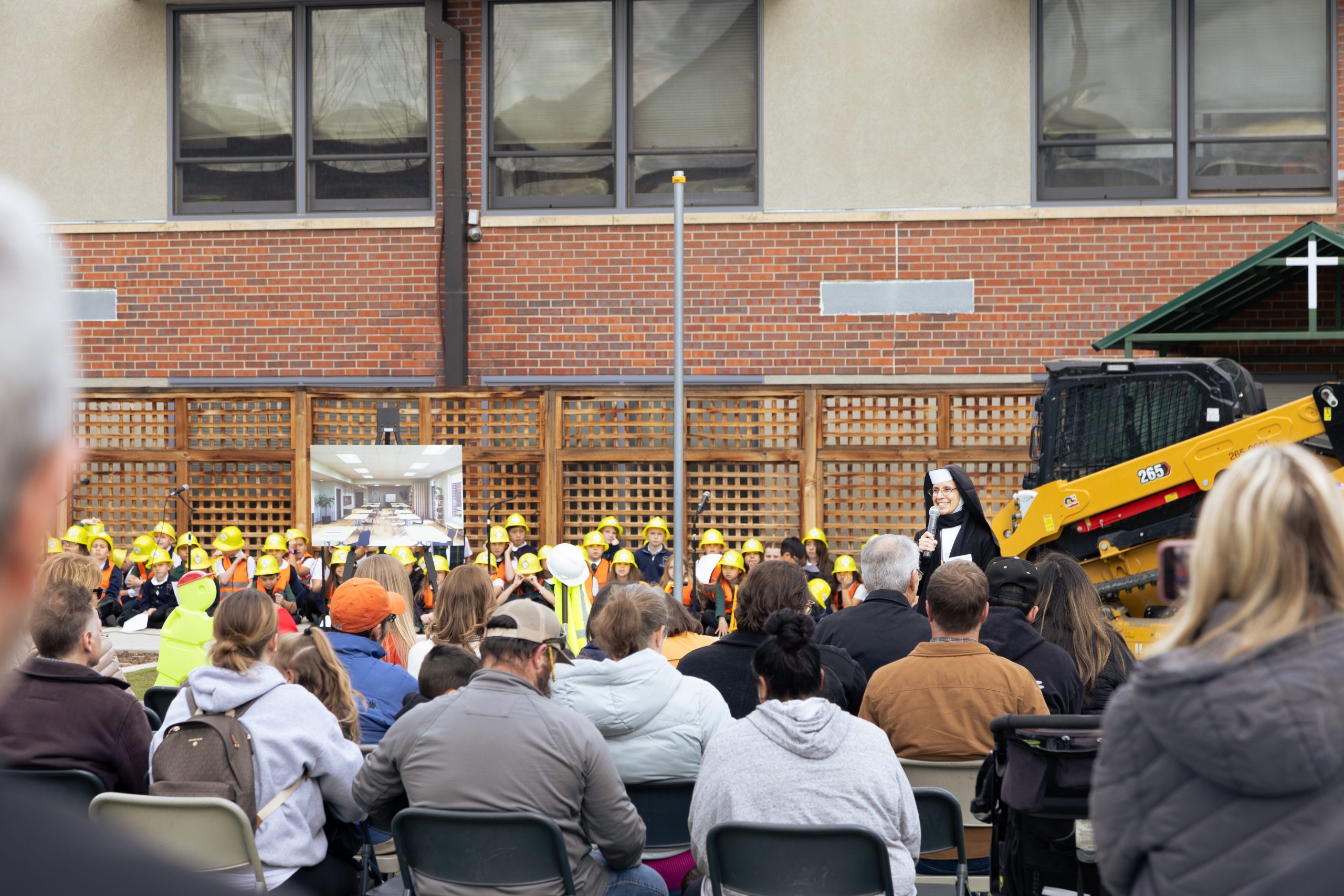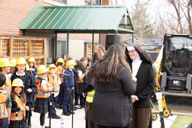 En una luminosa mañana de diciembre en Wheat Ridge, el patio de la escuela católica STEM Sts. Peter and Paul vibraba de emoción. Los estudiantes, reunidos en sus uniformes, las familias, apretadas unas contra otras para resguardarse del frío, y las Hermanas Carmelitas del Sagrado Corazón de Los Ángeles, situadas cerca de la cerca de construcción, daban un testimonio gozoso de un momento especial.