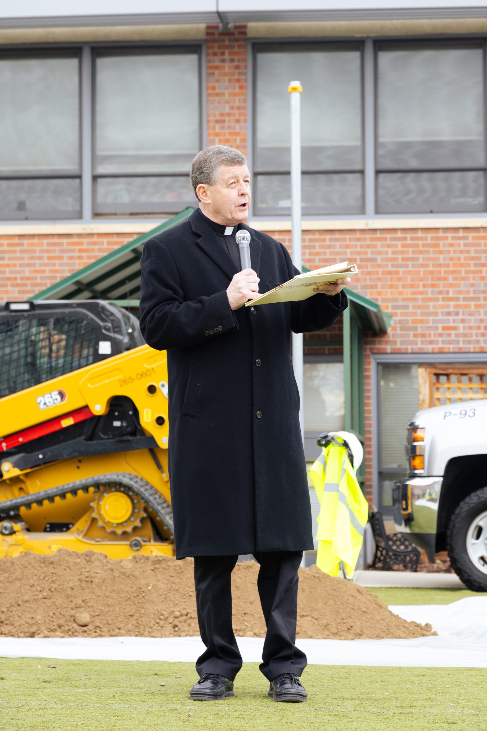 Durante la ceremonia, el arzobispo de Denver, Samuel J. Aquila, bendijo el terreno y agradeció a los padres, feligreses, carmelitas y líderes escolares cuyos sacrificios hicieron posible el proyecto.