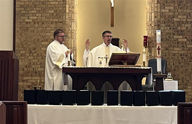 “Hoy tal vez celebramos a algunos de sus seres queridos que ya son santos en el cielo”, comentó el padre Jason Wunsch. “Y si no, están en el purgatorio y oramos por ellos, ¡y pronto estarán allá! Y nos damos cuenta de que nuestras vidas están unidas”.