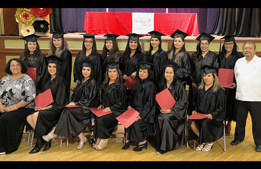 “El logro de graduarse hoy no solo las reconoce a ustedes, sino que reconoce a toda su familia. Muestra que todos en el hogar luchan por un mejor futuro y más altos ideales”, dijo Alfonso Lara, director de Centro San Juan Diego, durante la ceremonia. “Por esto existe Centro, para apoyar a las familias y a sus miembros a estudiar y formarse para servir mejor en esta sociedad, mostrando que la dignidad de la persona humana no la determina su estatus migratorio, un número de seguro social o el color de piel, sino su carácter y esencia por ser hijos de Dios”.