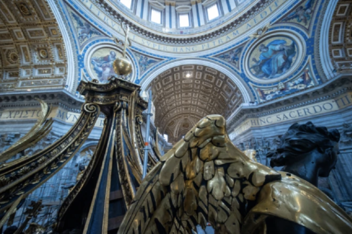 Las restauraciones finalizadas del baldaquino de bronce sobre el altar central de la Basílica de San Pedro, diseñado por Gian Lorenzo Bernini, serán inauguradas a fin de mes.